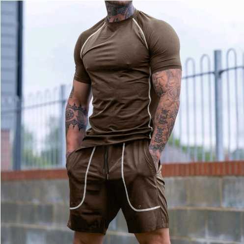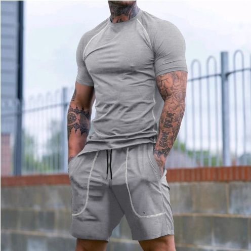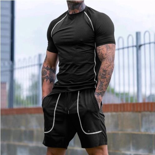 Abbigliamento aderente aderente da uomo in 2 pezzi traspirante a asciugatura rapida per allenamenti con Design a tinta unita
