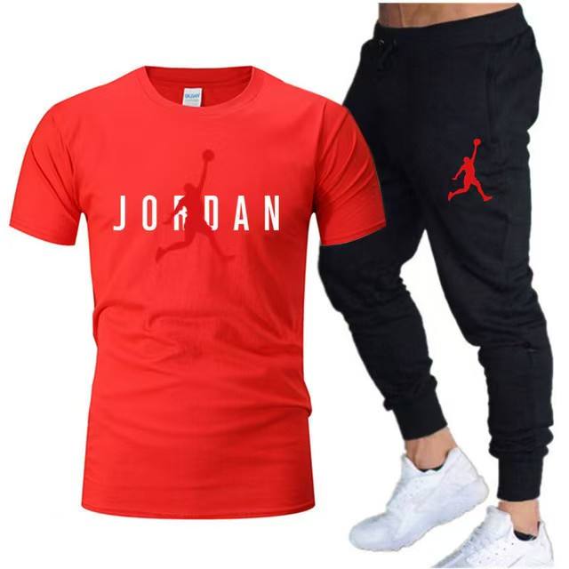 Men's Summer T-shirt Short Sleeved Long Pants Casual Suit Men's Sports Suit