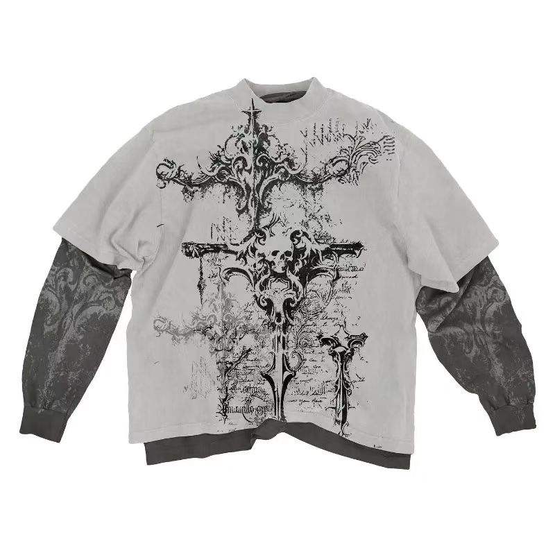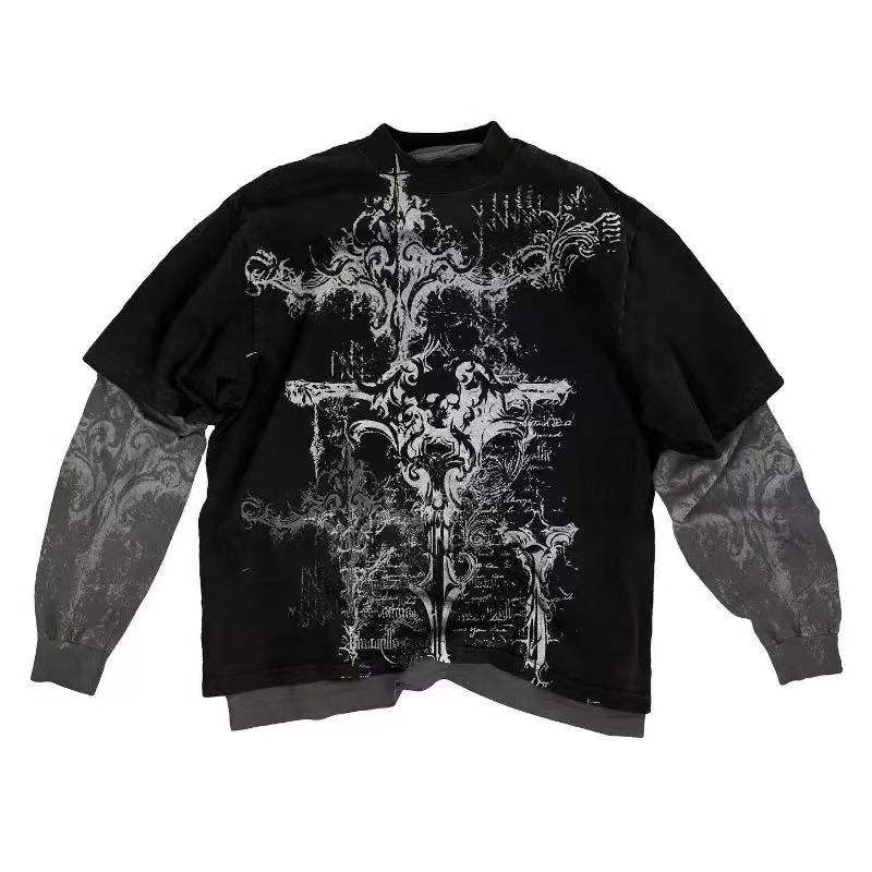 Camicia estiva da uomo vintage lavata a maniche lunghe con scollo rotondo, top casual in stile street giapponese