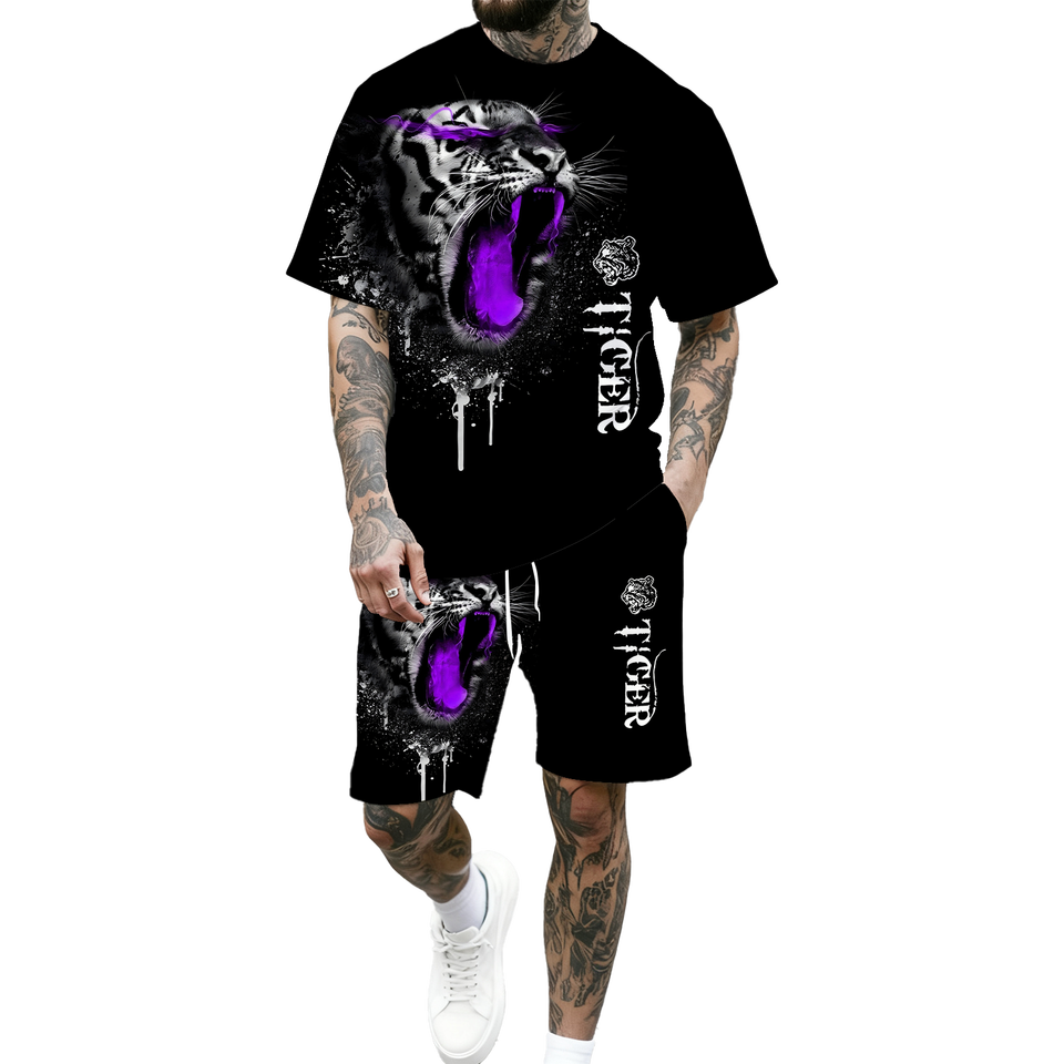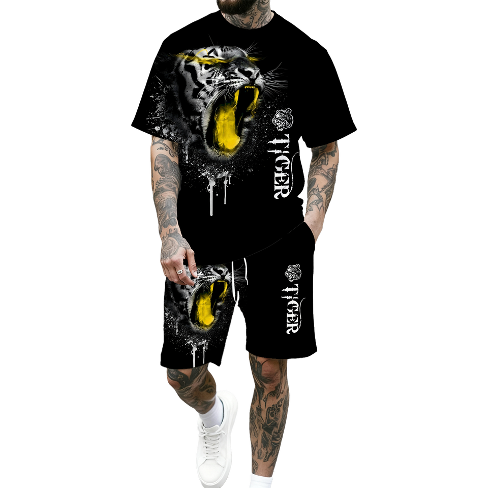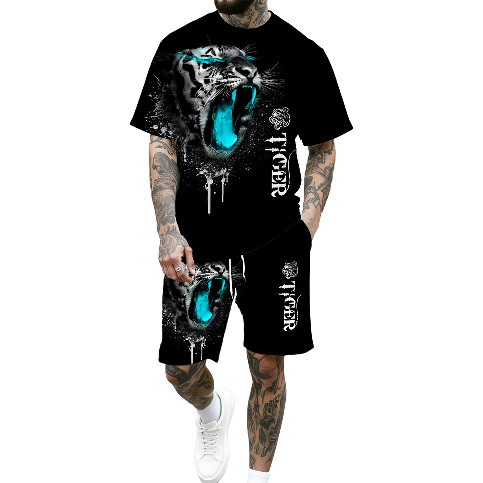 Set T-shirt e Pantaloncini da Uomo, Completo Due Pezzi Casual con Maniche Corte e Pantaloncini Larghi