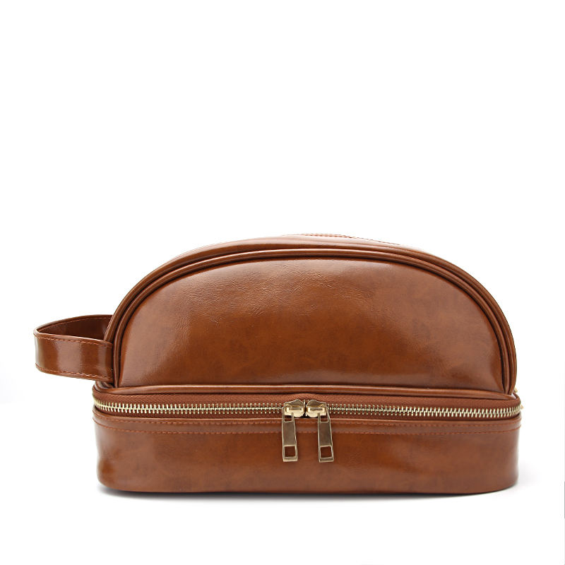 Degli uomini di Sacchetto di Corsa con Due vie di Separazione Zip Cuoio Genuino Personalizzato Borsa Da Toilette