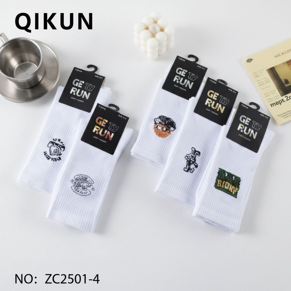 Men's Trendy High Elastic White Socks Anti-Slip Daily Sporty Character Durable Polyester Spandex Digital Printing Multiple Brown