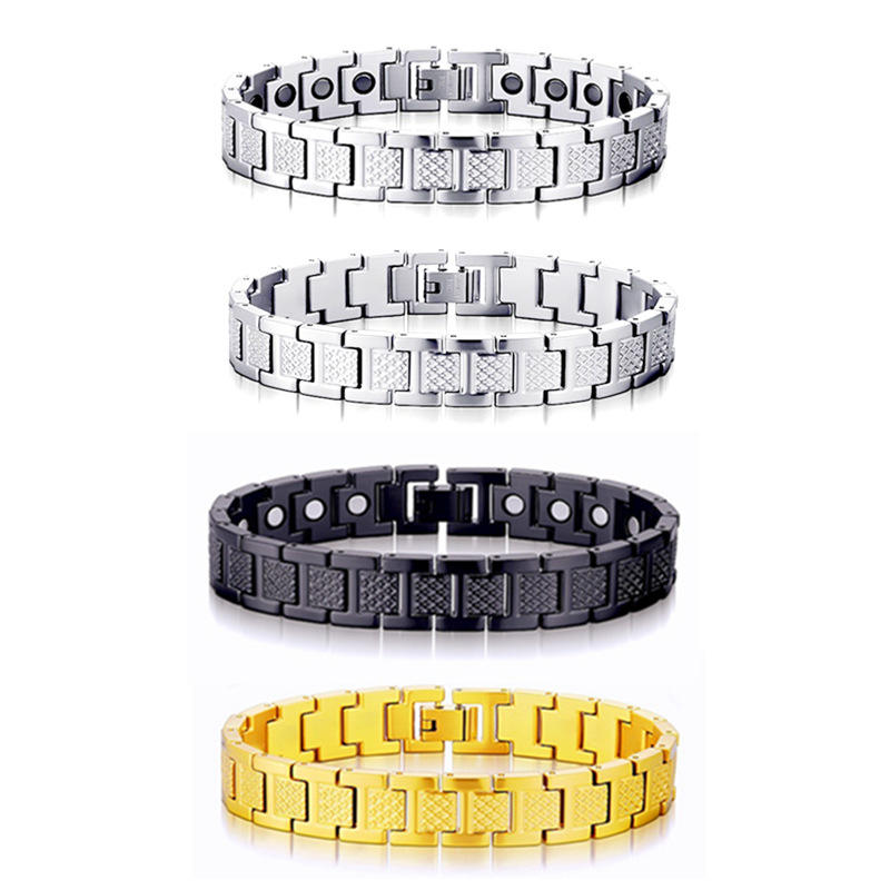 Bracciale Terapeutico da Uomo Trendy Punk in Acciaio Inossidabile con Maglia a Catena da Moto Rettangolare Geometrica e Chiusura Magnetica a Coccodrillo