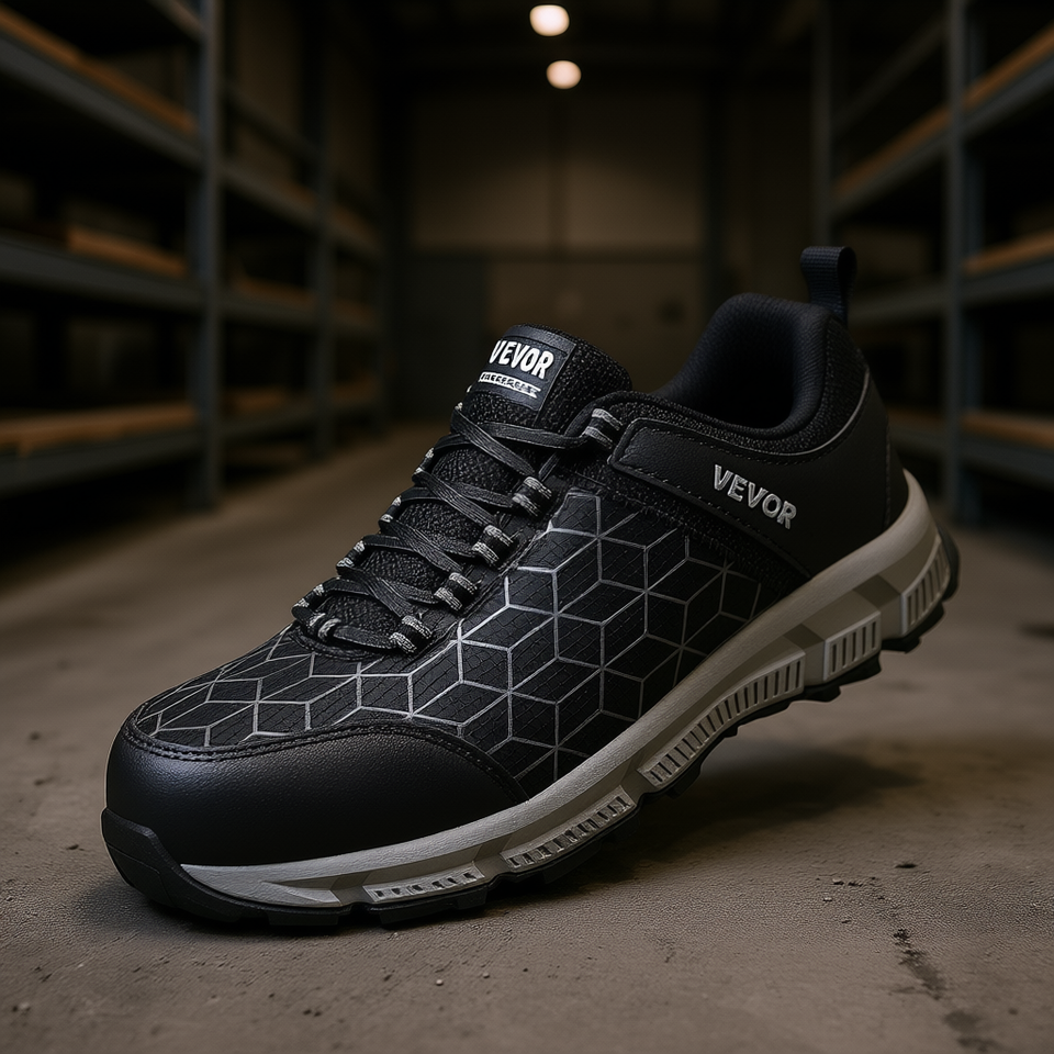 Men's Athletic Work Shoe Steel Toe Black Size 10.5 Wide Safety Sneakers Rubber Outsole EVA Midsole