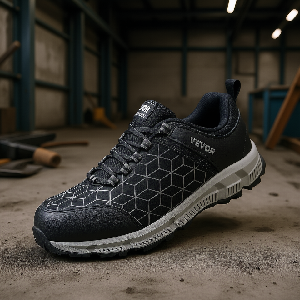 Men's Athletic Safety Shoes Steel Toe Work Sneakers Size 12 Black Synthetic Upper Rubber Outsole EVA Midsole