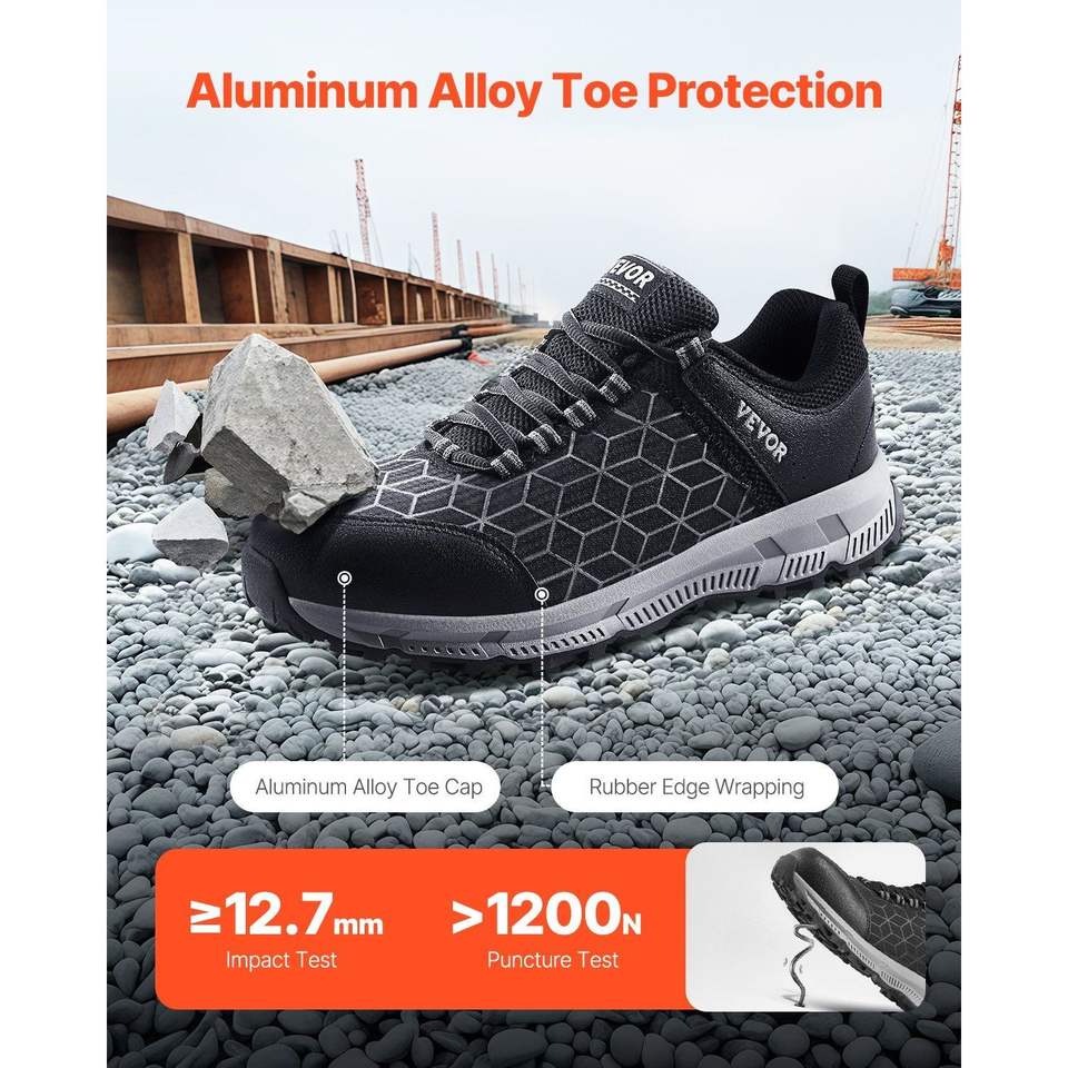 Men's US Size 12 Wide Athletic Work Shoe Sneakers Black Steel Toe Safety Shoes