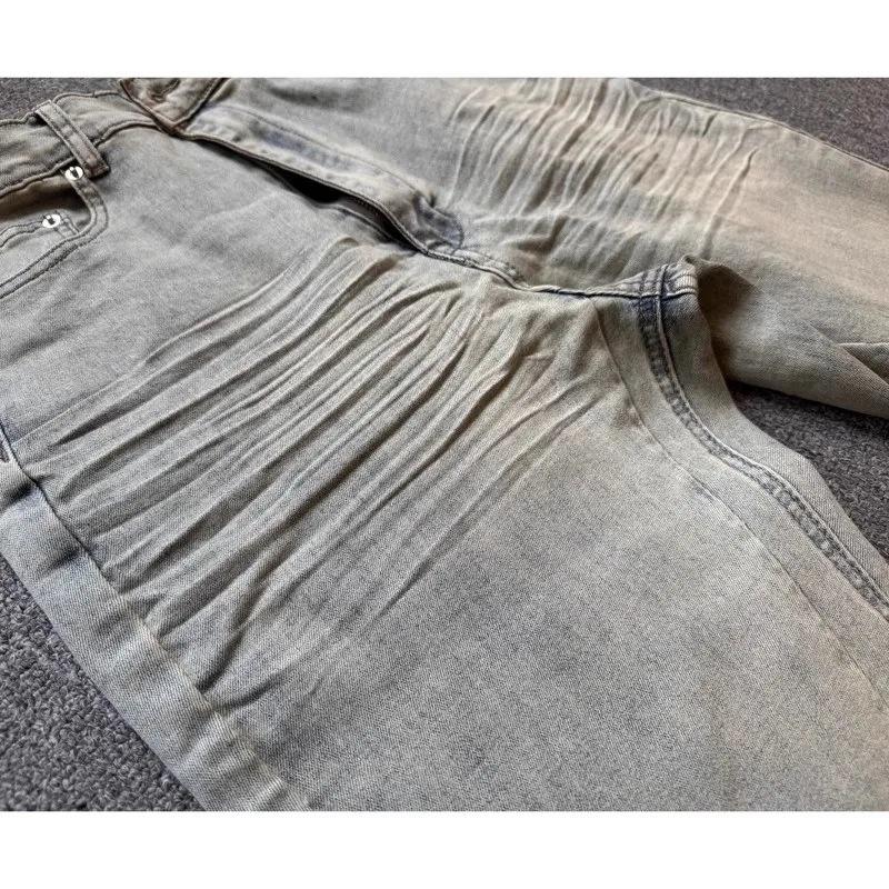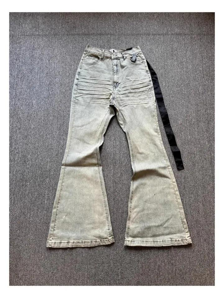 Jeans Vintage da Uomo con Lavaggio Acido, Gamba Svasata, Grigio, Vita Bassa e Slim Fit, Leggings in Denim per Uomo, Vendita all'Ingrosso
