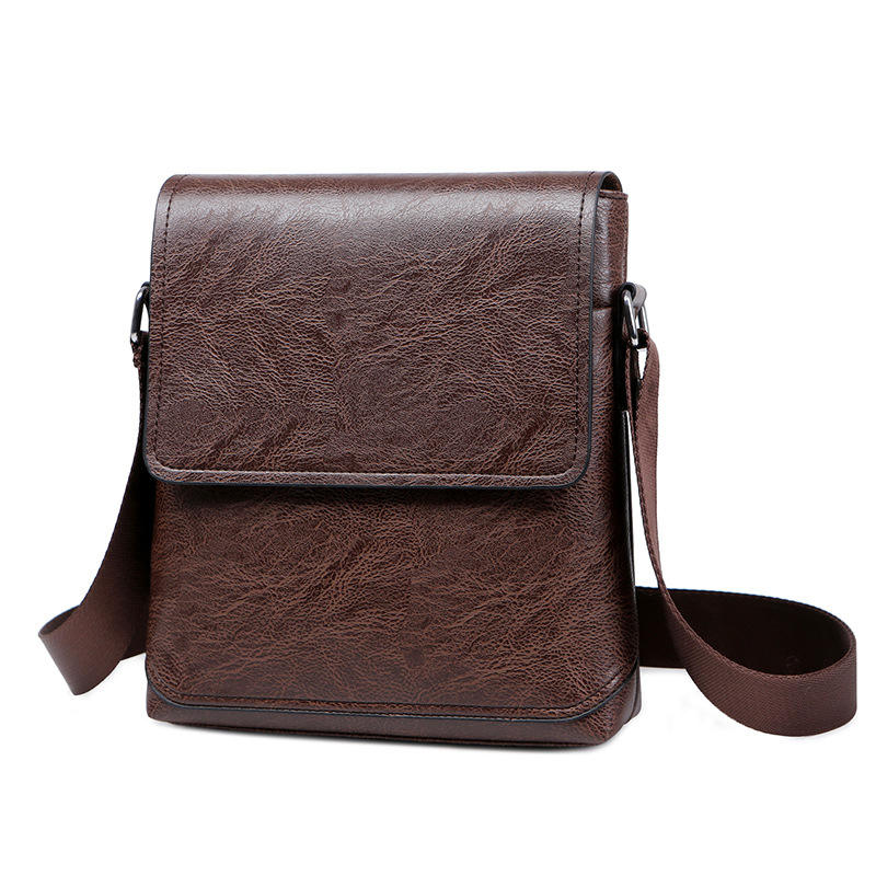 Men's Vintage Fashion PU Leather Shoulder Sling Bag Custom Logo Waterproof Flap Messenger with Zipper Closure