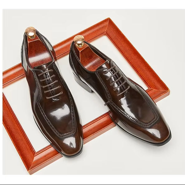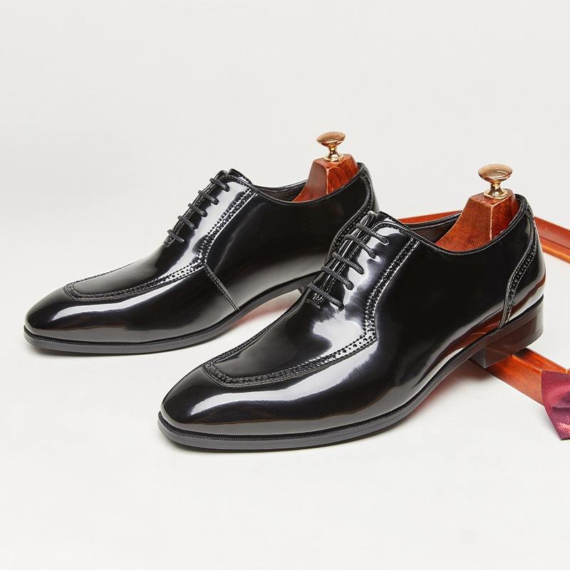 Men's Vintage Oxford Dress Shoes Bright Patent Leather With Square Toe QS111A138