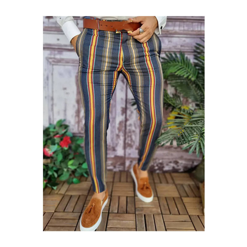 Pantaloni Slim Fit a Righe Vintage da Uomo, Nuovi Pantaloni Casual a Vita Media Elasticizzati