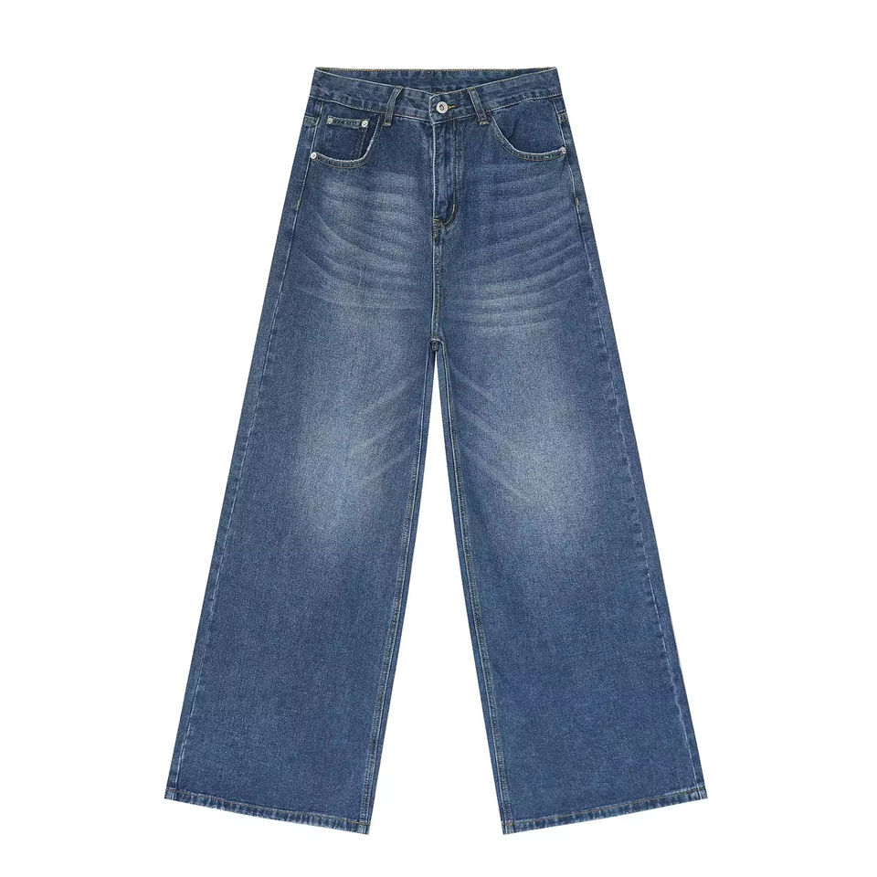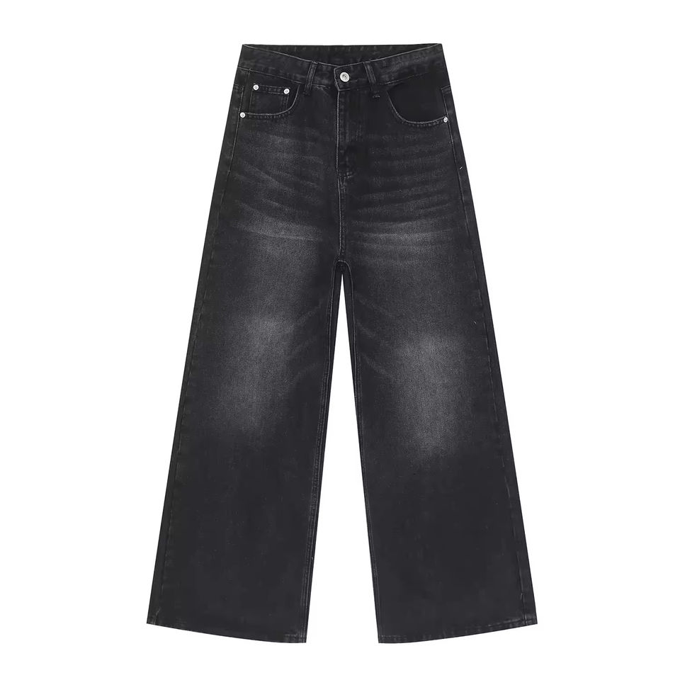 Men's Vintage Style Light Washed Jeans Gray Black Denim Stacked Baggy Leg Loose Straight Cotton Fit Mid Waist Autumn Y2K Spring
