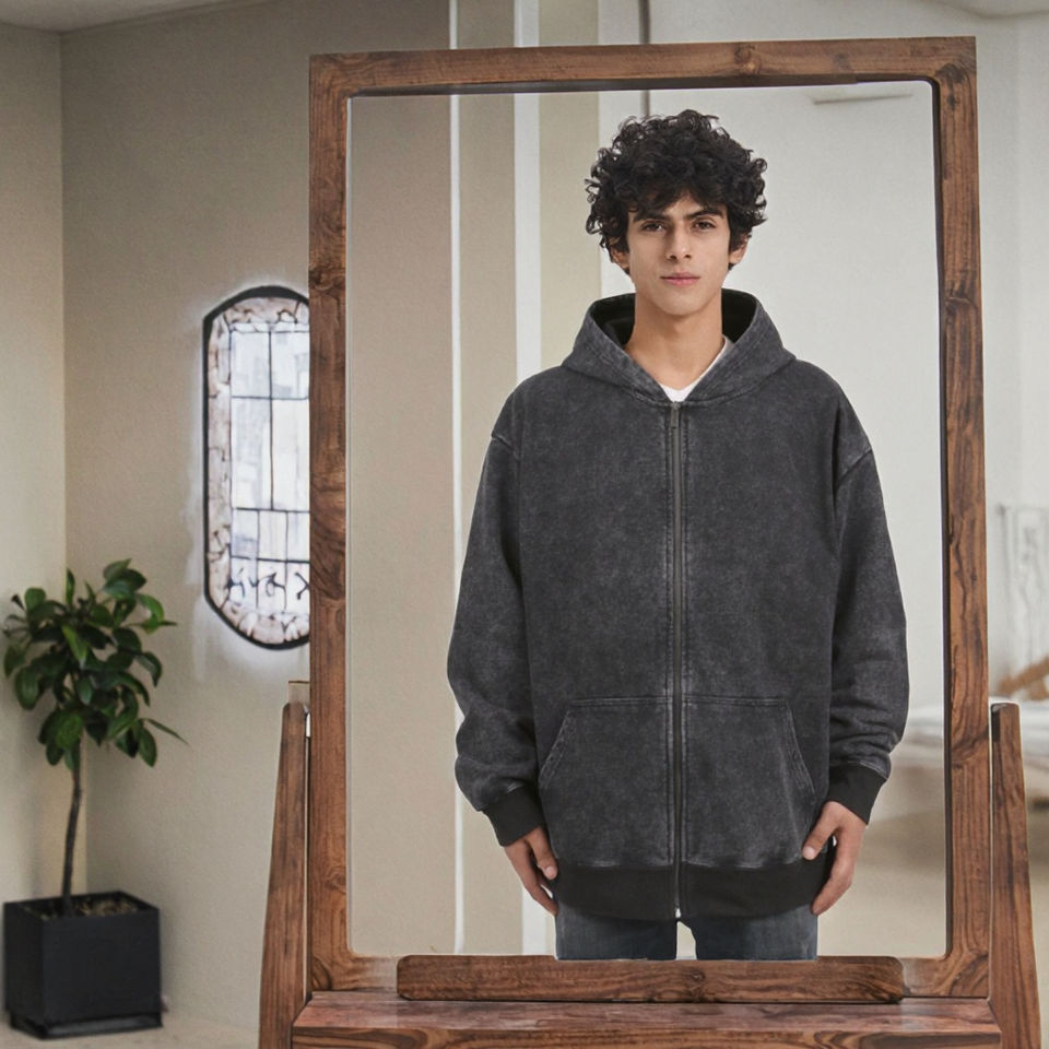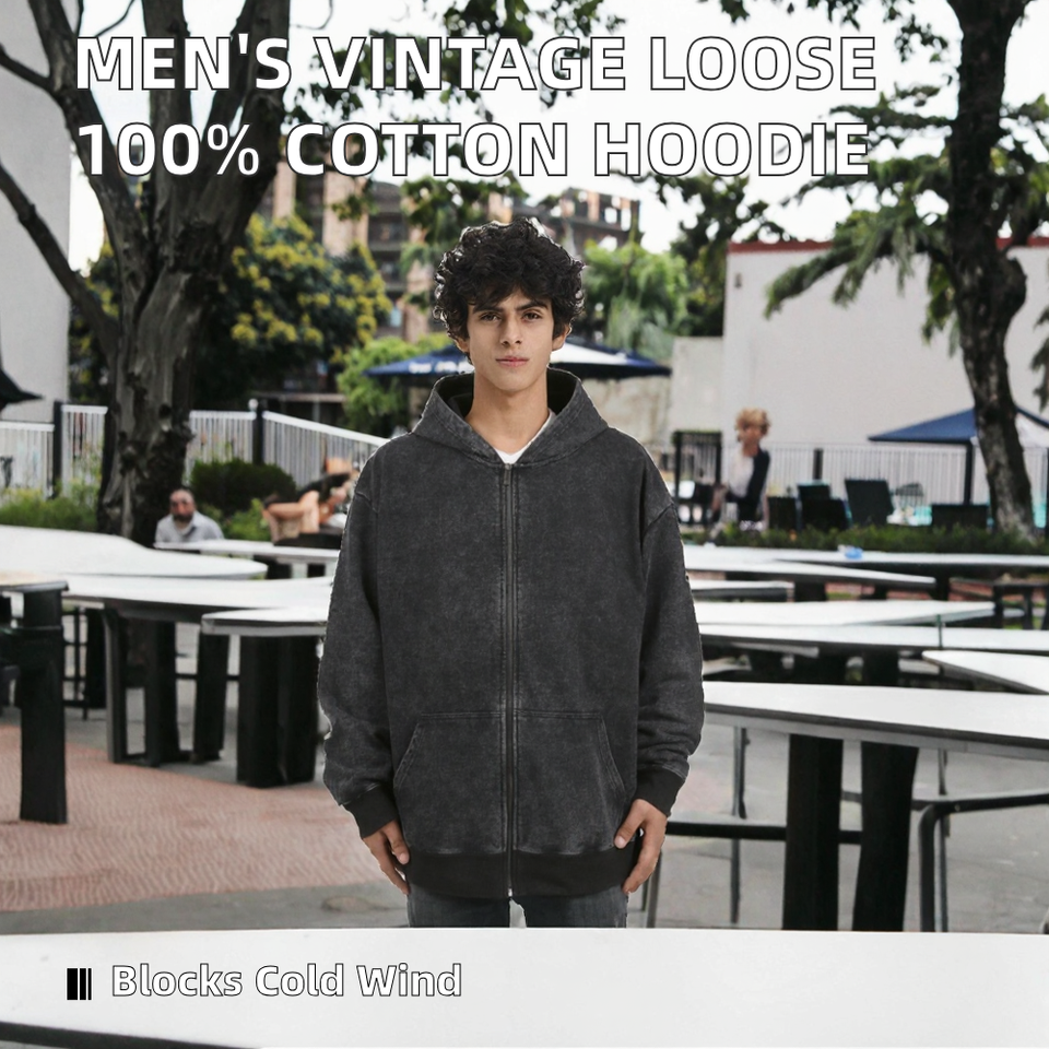 Felpa con Cappuccio da Uomo Stile Vintage, Ampia con Zip, Ricamo 3D, Stampa Digitale, Motivo Tinta Unita, in Pile 100% Cotone, Cappotto Invernale XL