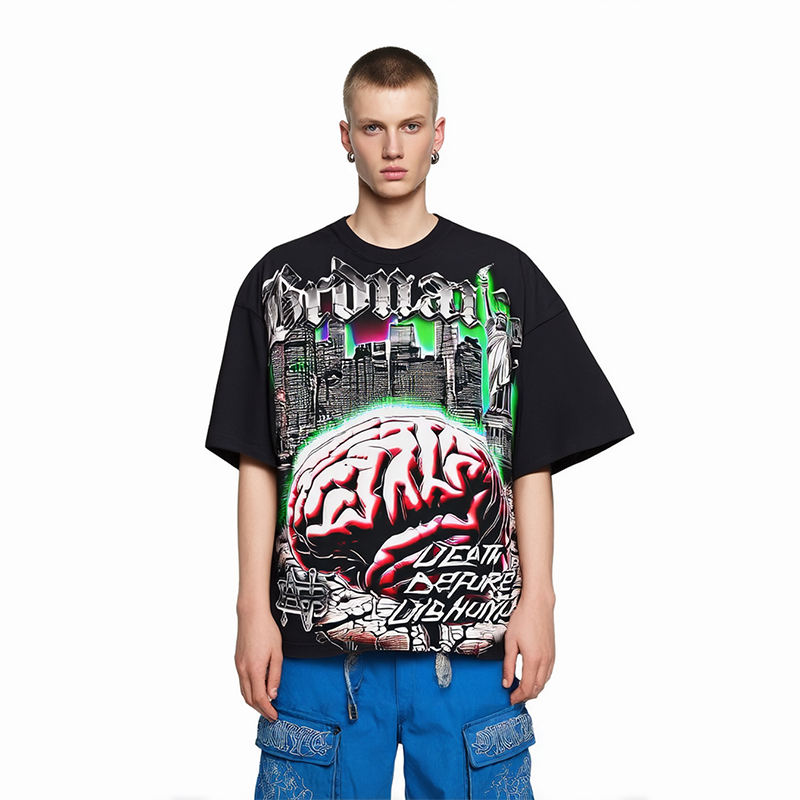 Men's Vintage Washed Oversized Loose Fit Heavy Cotton Shirt Retro Band Graphic Print Distressed Street T-Shirt