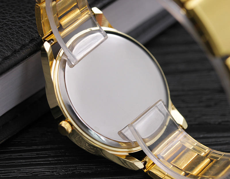 Orologio da Uomo al Quarzo, Placcato Oro, in Acciaio Inossidabile, Design Casual di Lusso, con Vetro, Confezione in Sacchetto OPP, Cassa Rotonda in Lega, Modello 236