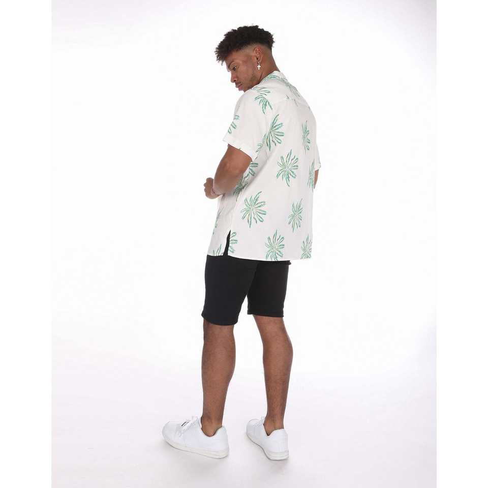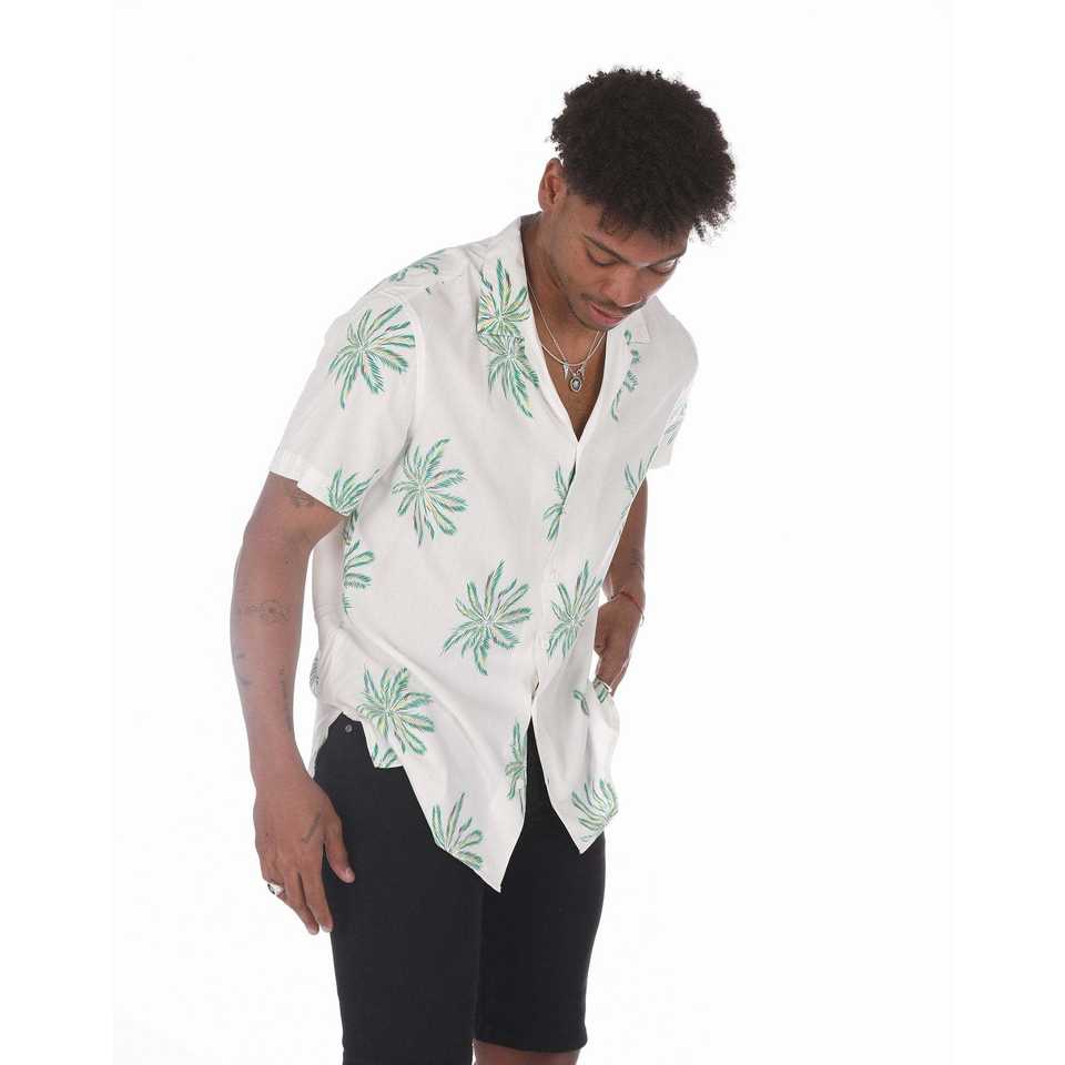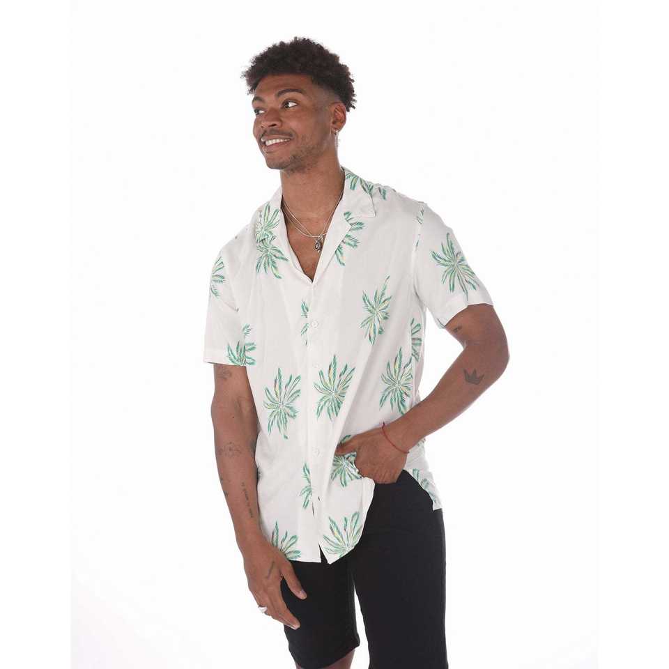 Men's White Hawaiian Shirt with Green Palm Trees Print