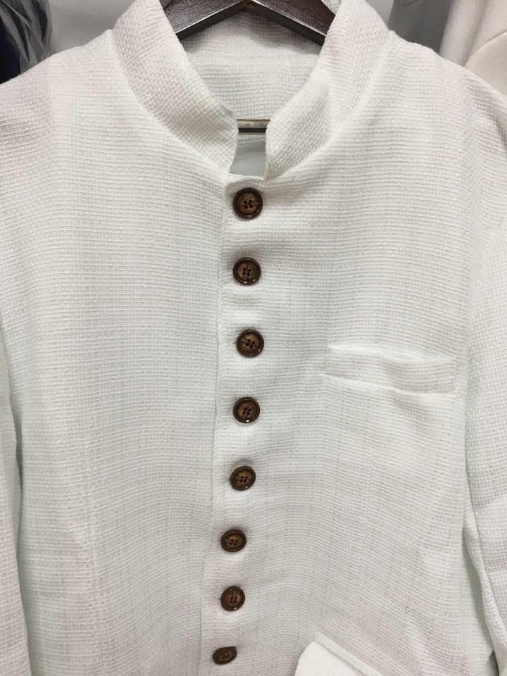 Blazer da Uomo Bianco a Pied-de-Poule con Colletto alla Coreana - Giacca Formale Slim-Fit con Bottoni Dorati Sehe Fashion