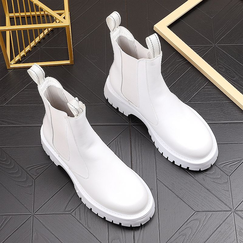 Men's White for Boots British Style Long Barrel Chelsea Leather High-Top Fashionable Thick Bottom Ankle Boots for Spring