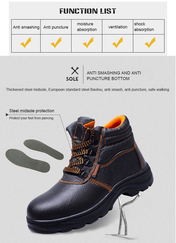 Men's Winter Autumn Safety Construction Work Boots Genuine Leather Upper PU Anti-Slip Steel Toe Rubber Insole Safety Shoes