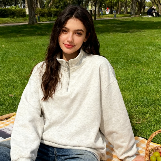 Vintage, Modo, Per le vacanze, Casuale, Mezza zip, Felpa