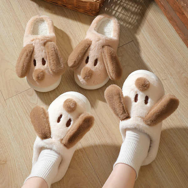 Men's Winter Indoor- Outdoor Fluffy for Slippers with Cute Dog Design New Plush for Slippers with EVA Outsole Warm for Home Use
