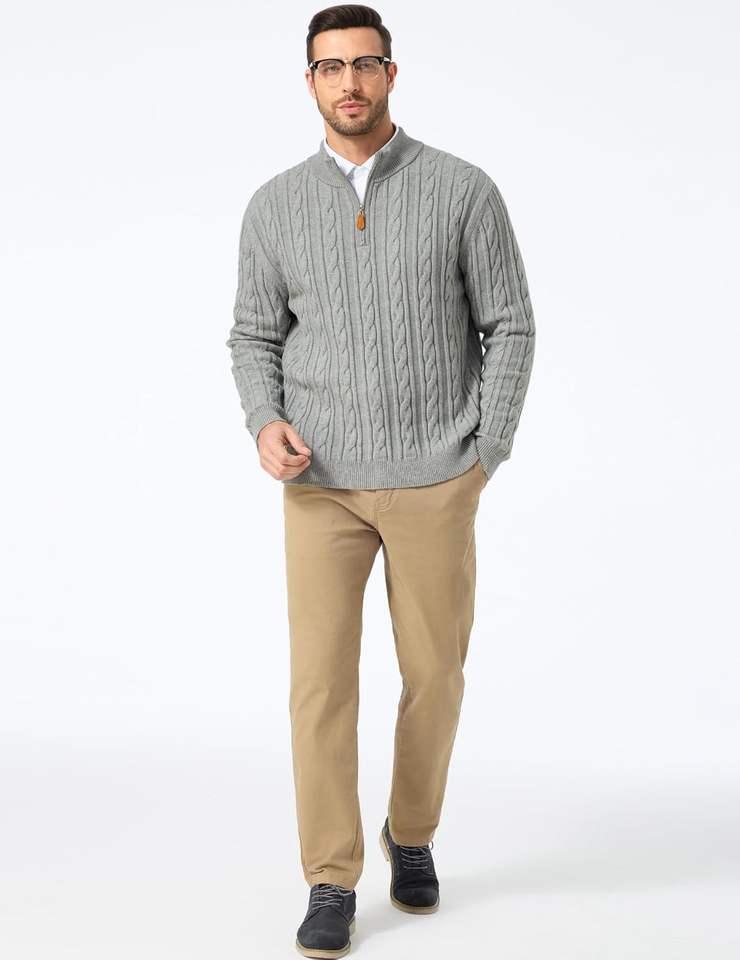 Caratteristica:Maglia a trecce, collo alto, zip a un quarto