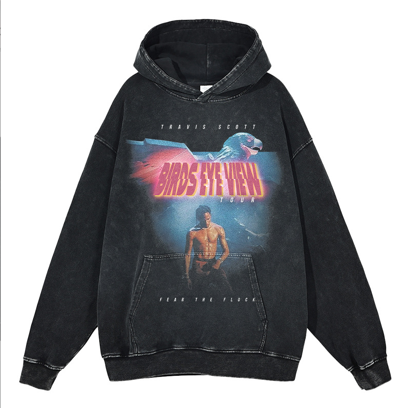 Men's Women's Winter Vintage Washed Hoodie (Astroworld/Birds Eye View) Hip Hop Streetwear Eco-Friendly Windproof Loose Fit