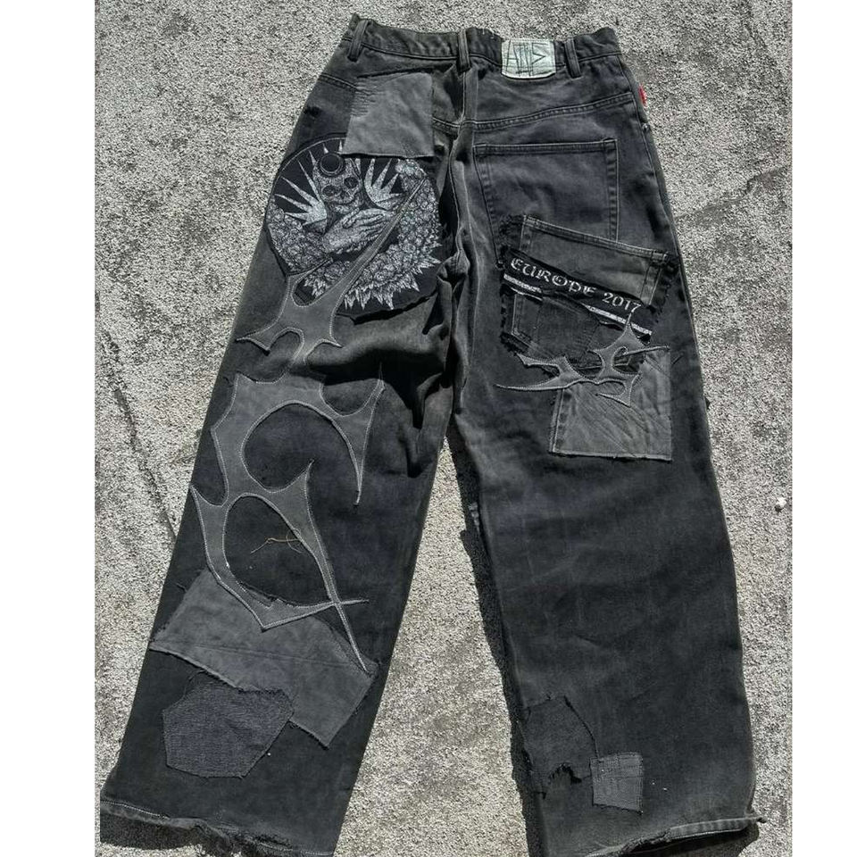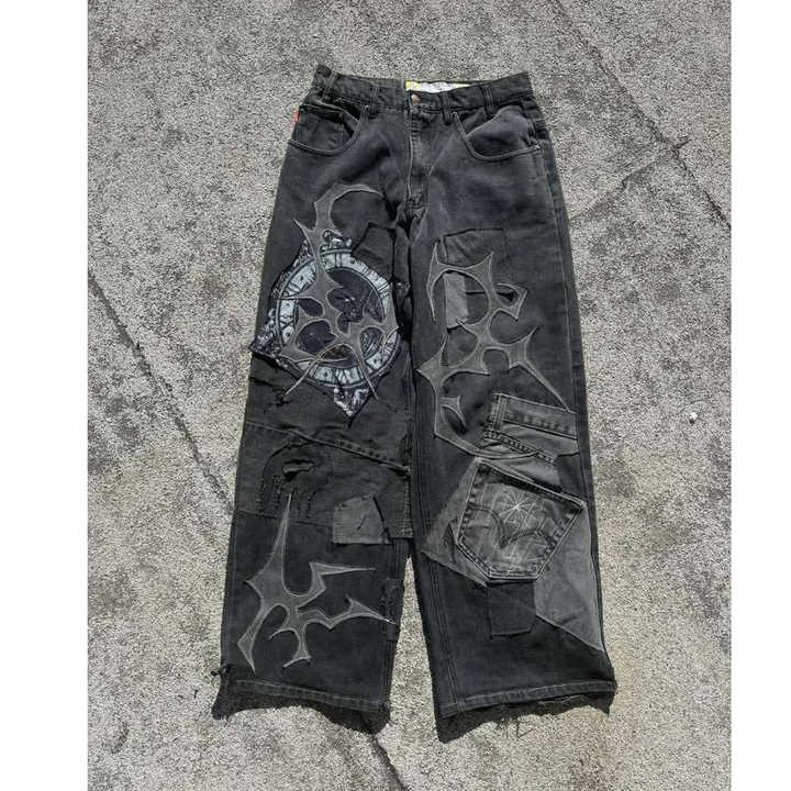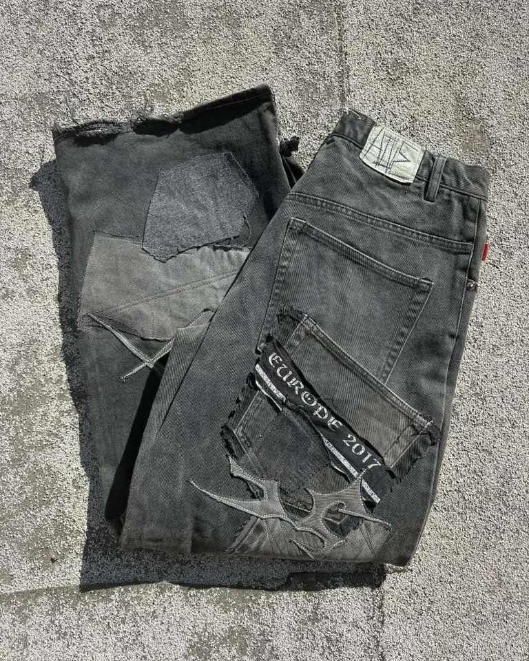 Jeans da Uomo Y2K Gotici Patchwork in Denim a Gamba Dritta Baggy con Tasche Cargo e Dettagli Grezzi Effetto Consumato Fornitore OEM/ODM