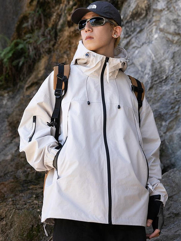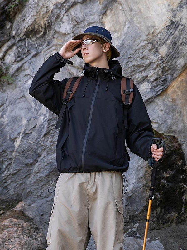 Men's and Women's Windproof Outdoor Jackets with Hood for Spring Autumn Winter Water-Splashing Mountaineering Clothes