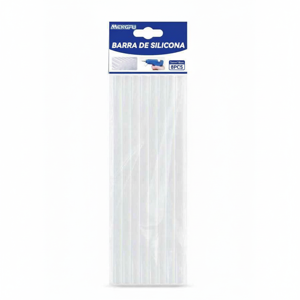 Mengfu M-0064 Confezione da 8 Bastoncini di Colla a Caldo EVA Trasparente, Diametro 7mm, per Incollaggio Efficiente di Legno, Gomma, Plastica e Schiuma, Prodotto in Cina