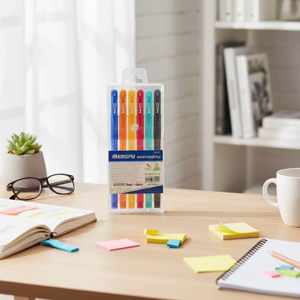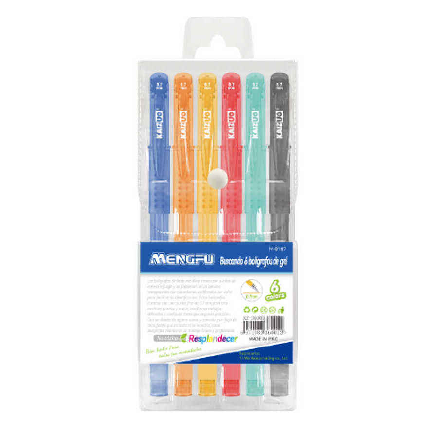 Mengfu M-0167 6pcs Triangle Grip Normal Gel-Ink Pen Set Multi-Color Plastic 0.5mm Writing Width Made in China