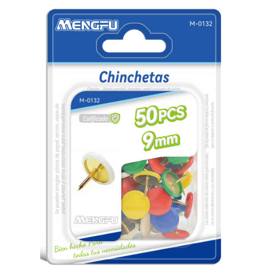 Mengfu Set di 50 Puntine Colorate da 9mm con Testa in Plastica e Materiale in Acciaio per Ufficio e Scuola
