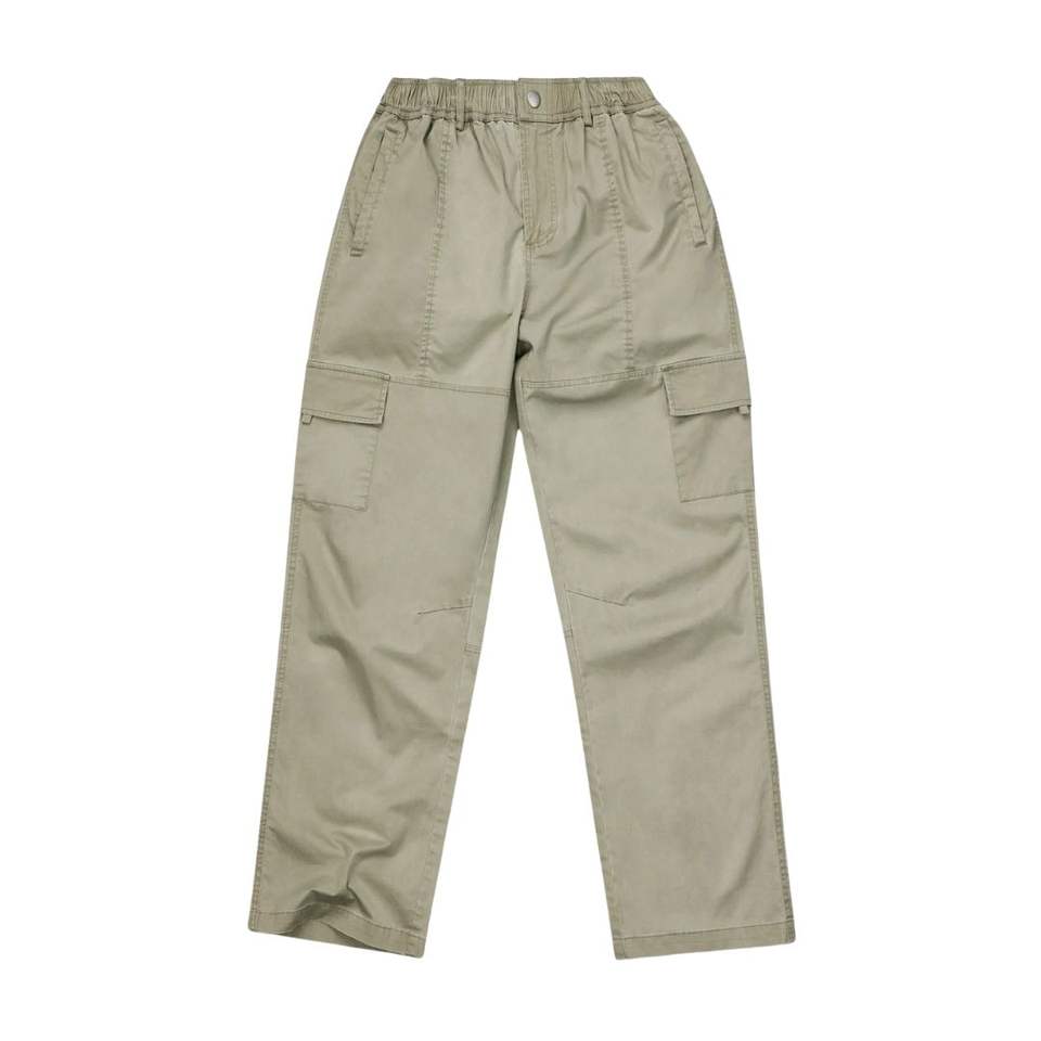 Mens Grey Green Relaxed Fit Utility Cargo Pants with Brushed Finish, Elastic Waistband, Functional Pocket Design