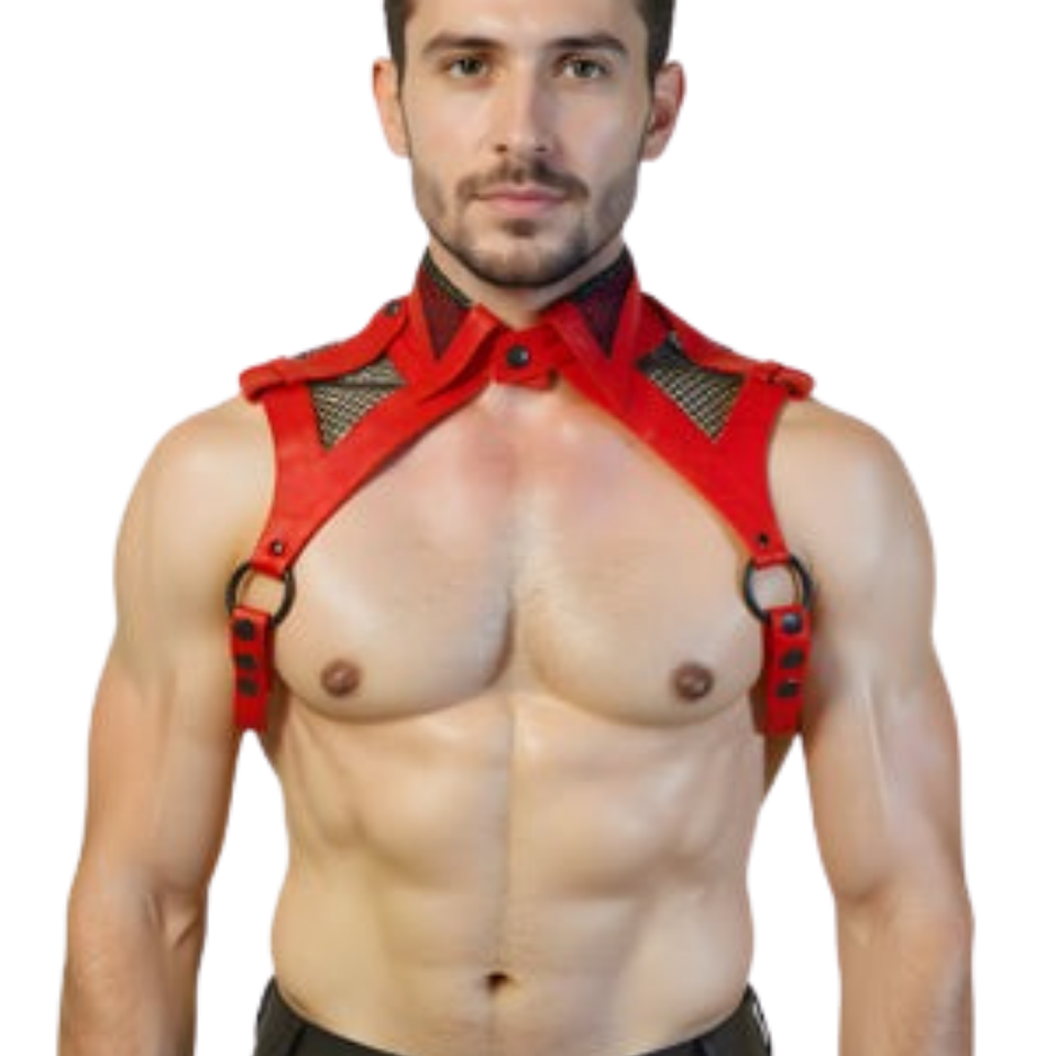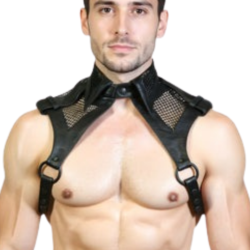 Camicia Senza Maniche da Uomo Gridlock in Pelle Nera e Rete, Top Fetish in Ecopelle per Clubwear