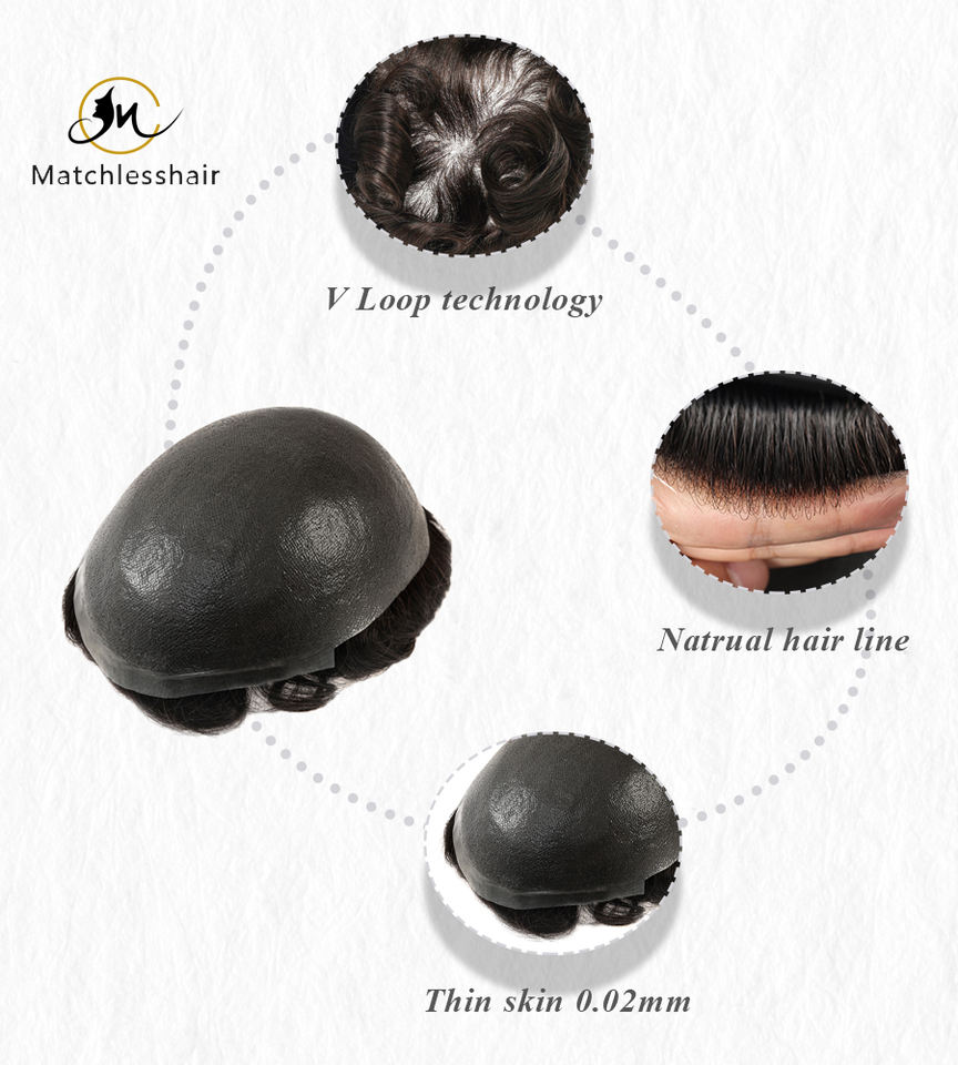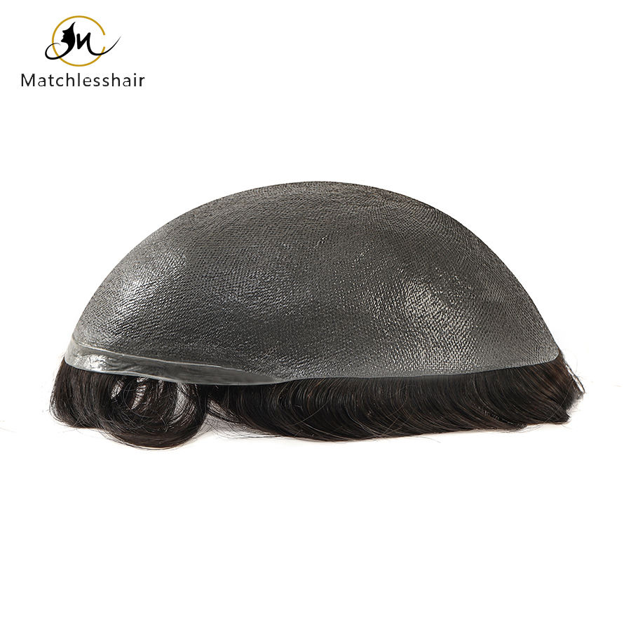 Sistemi di capelli da uomo basi morbide da uomo toupet pelle sottile capelli umani sostituzione parrucchino grigio 80% pelle sottile