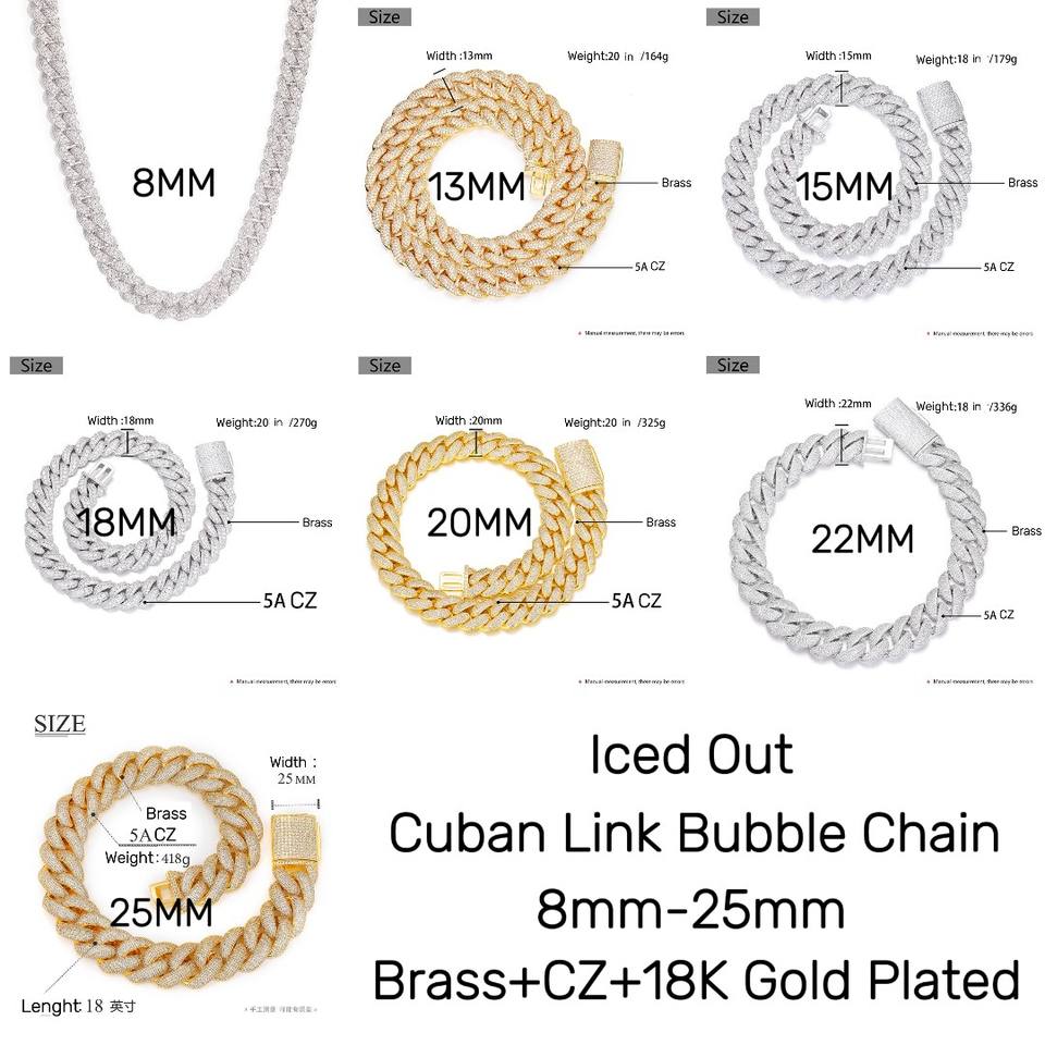 Set Bracciale e Collana a Catena Cubana Ghiacciata da Uomo Placcato Oro 18K Gioielli Hip Hop con Catena Bubble in Ottone e Diamanti CZ 5A