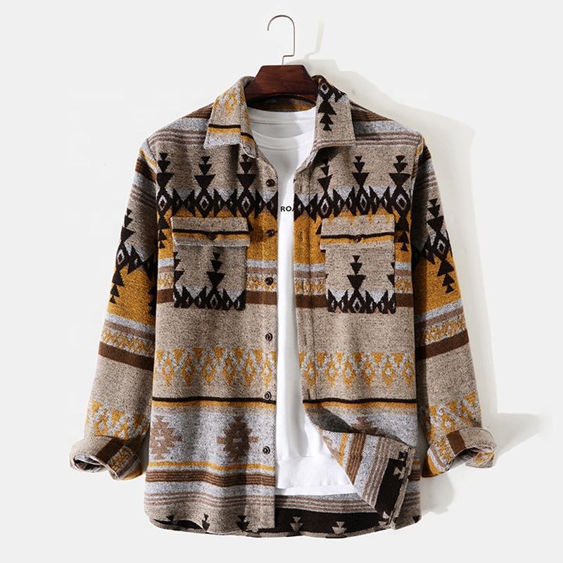 Mens manica lunga logo personalizzato lana rivestimento caldo camouflage moda camicie casual gentleman bomber camicie per uomo
