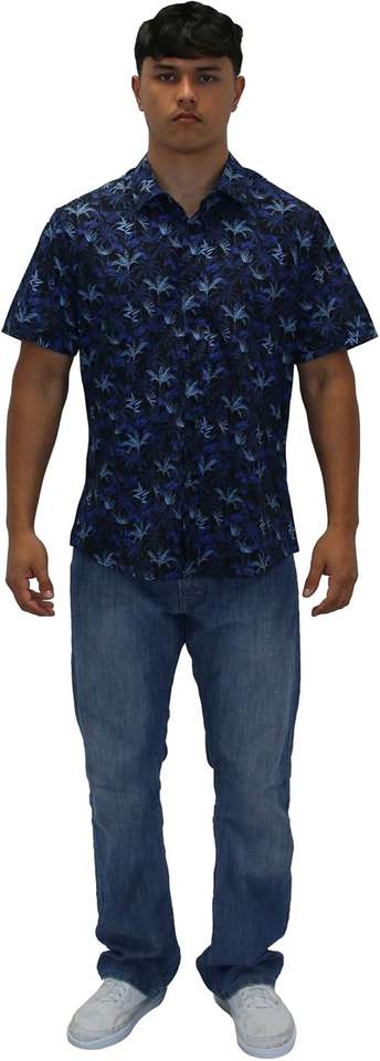 Mens Loose-Fit Casual Button-Down Jersey Shirt Hawaiian Tropical Print Stretch Short Sleeve 180 Grams Weight