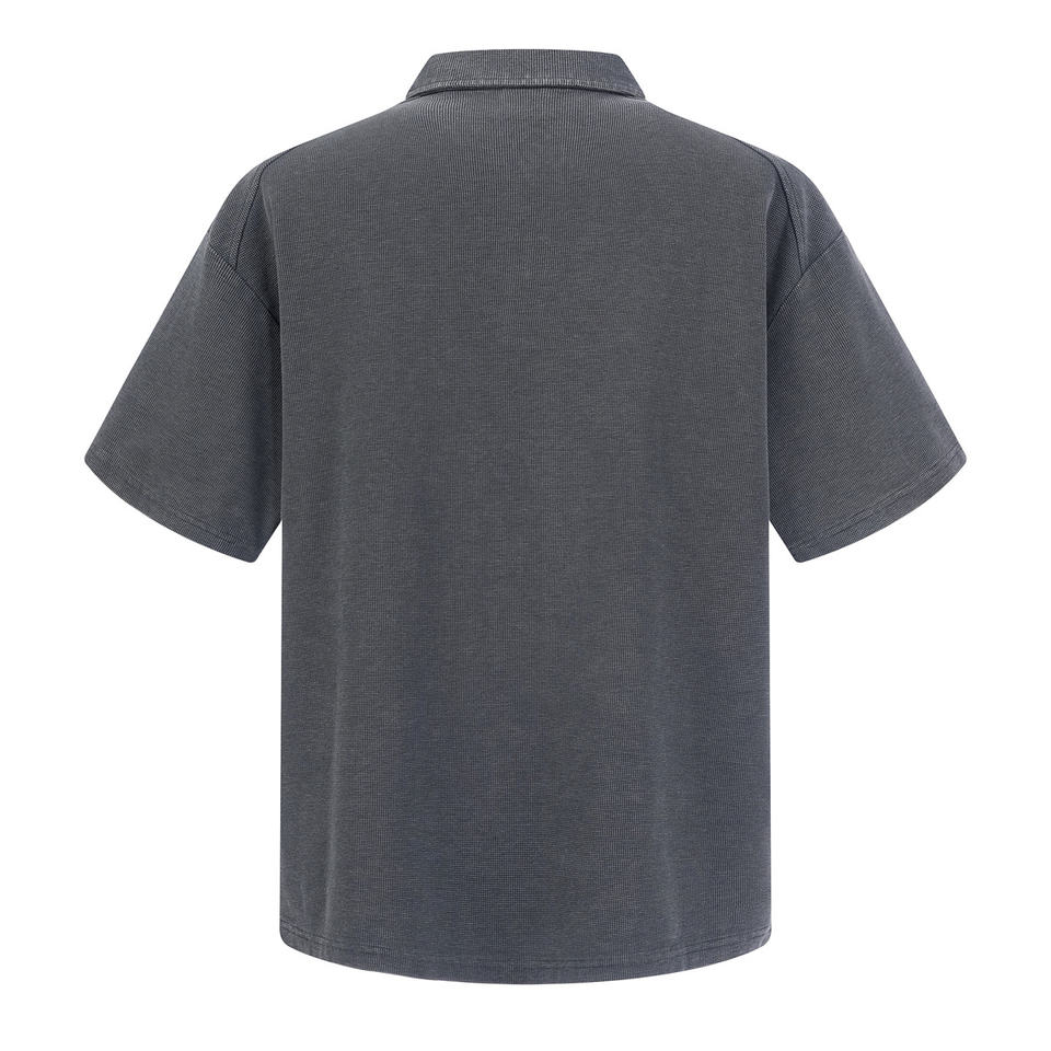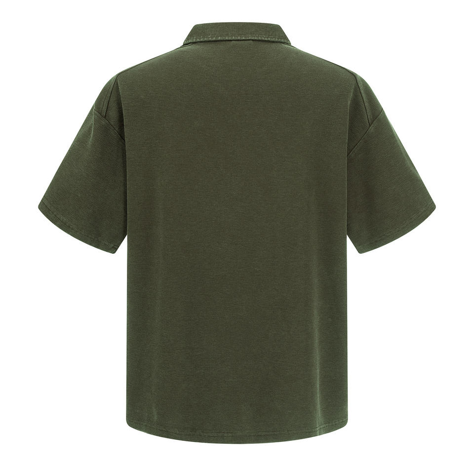 Polo da Uomo Oversize con Mezza Zip, Manica Corta, Effetto Lavato e Texturizzato, per Streetwear e Uso Quotidiano