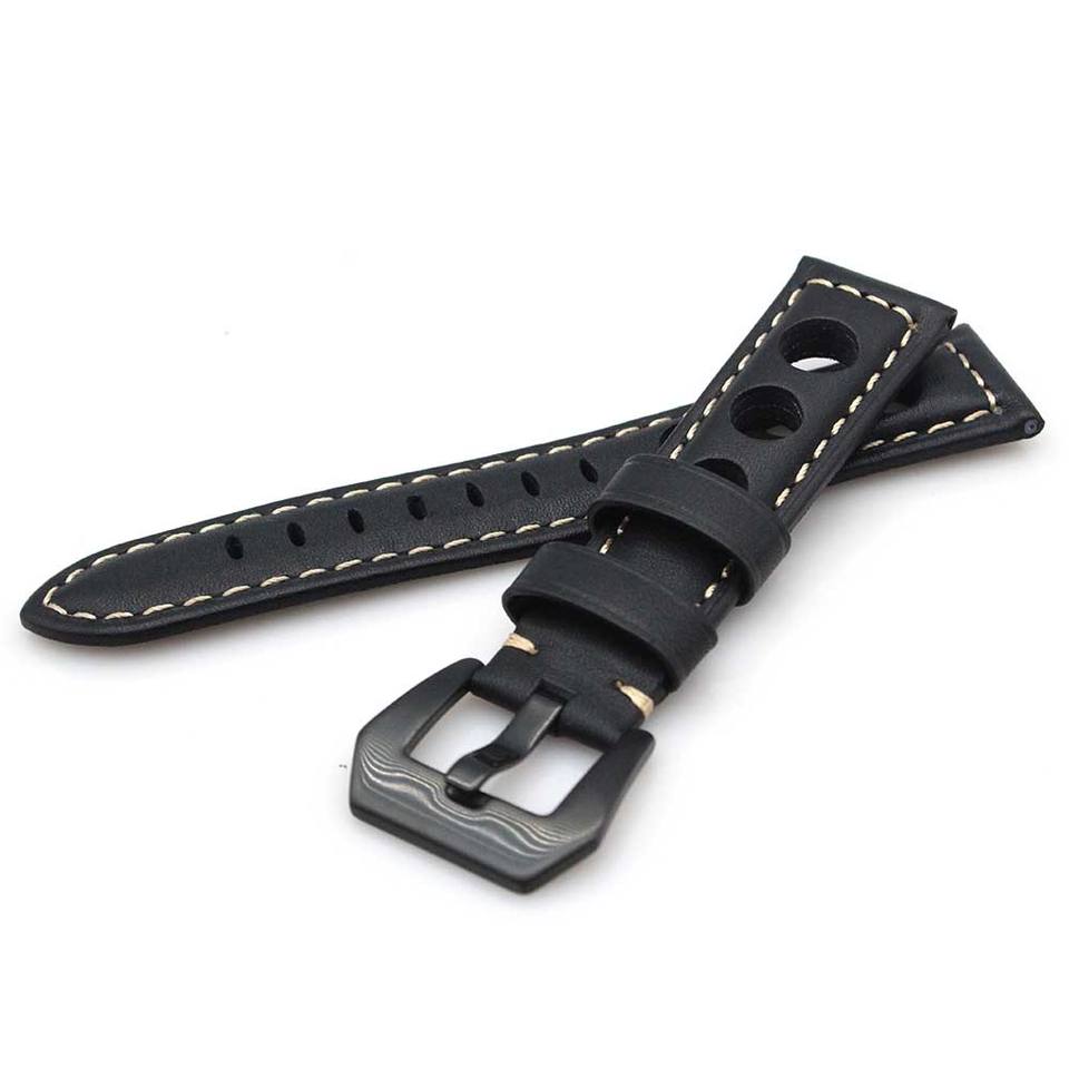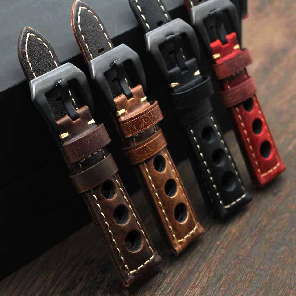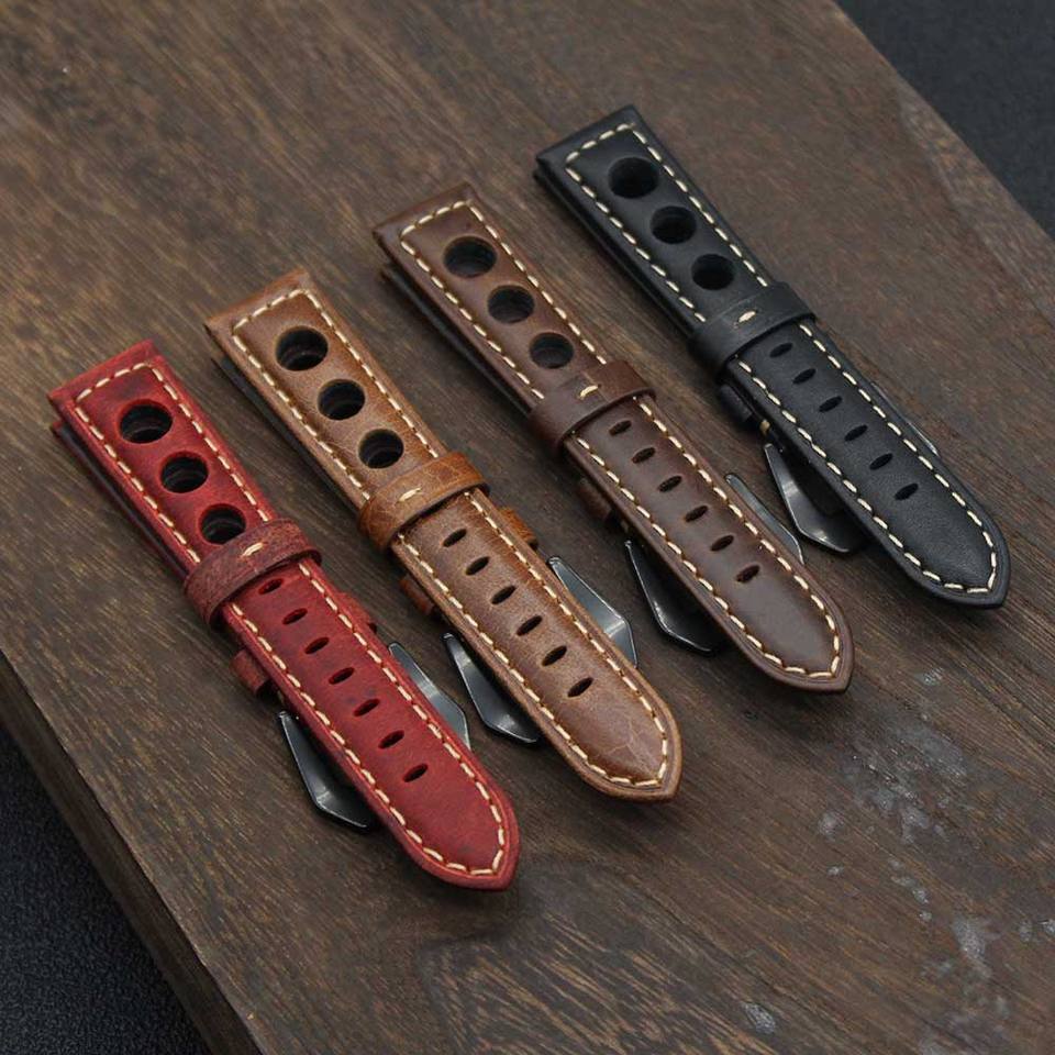 Mens Rally Racing Sports Genuine Calf Leather Perforated Watch Strap Band Handmade Crazy Horse Leather Watch Bands