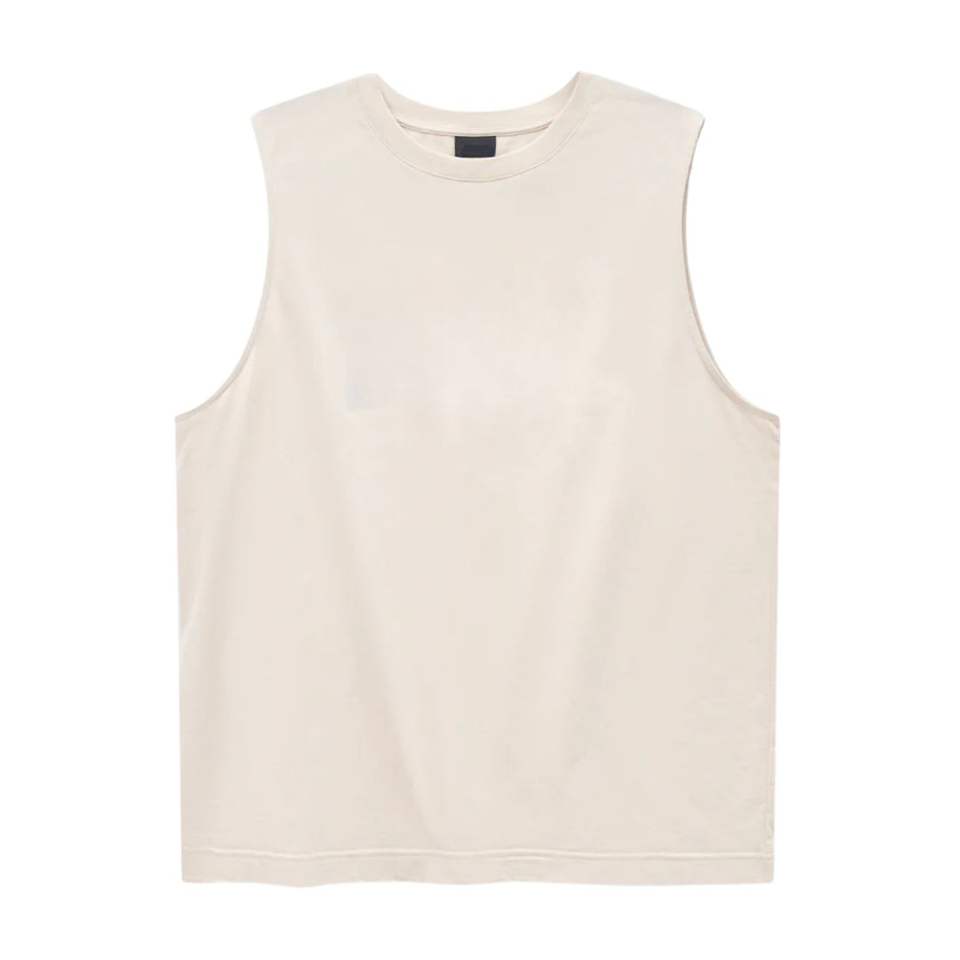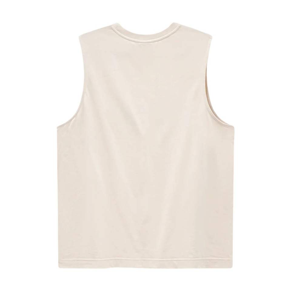 Mens Relaxed Fit Oatmeal Tank Top Sleeveless Cotton Vest with Printed Logo Ideal for Gym Layering and Urban Casual Wear