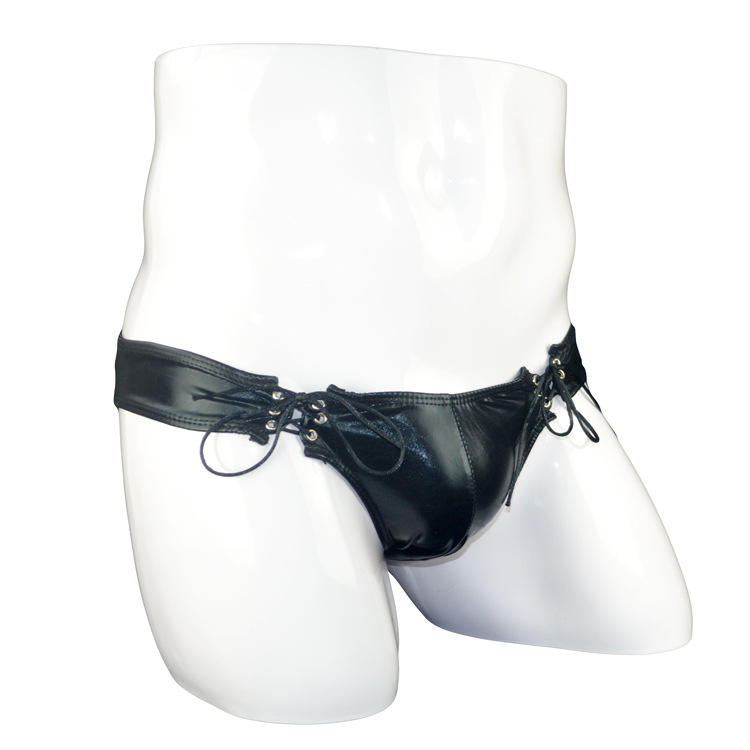 Mens Sexy Erotic Underwear Artificial Leather Low-waistline Thong Jock Strap Underpants Jockstrap Buttocks String Thongs