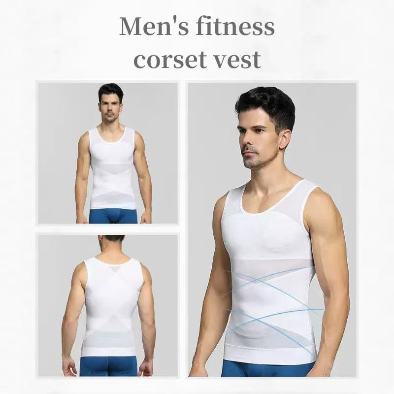 Mens Slimming Body Shaper Vest Gynecomastia Compression Shirts Tummy Control Sleeveless Undershirts Criss Cross Mesh Underwear