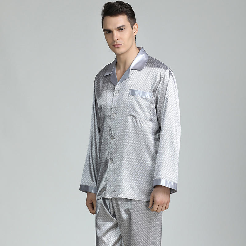 Mens Stain Silk Pajama Sets Pajamas Men Sleepwear Modern Style Silk Nightgown Home Male Satin Soft Cozy Sleeping