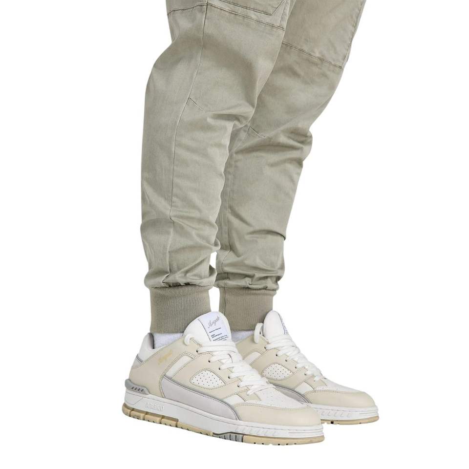 Mens Tapered Fit Grey Green Washed Utility Cargo Pants with Multiple Pockets, Stretch Fabric, and Rugged Washed Look