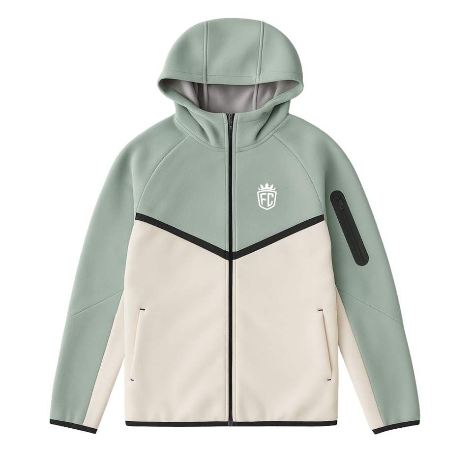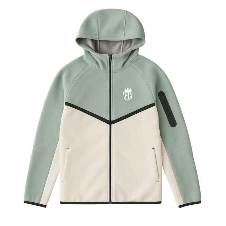 Giacca con Cappuccio Windrunner in Pile Tecnico da Uomo con Zip Intera Verde Salvia Polveroso Leggera Calda per Allenamento Atletico Abbigliamento Sportivo Premium