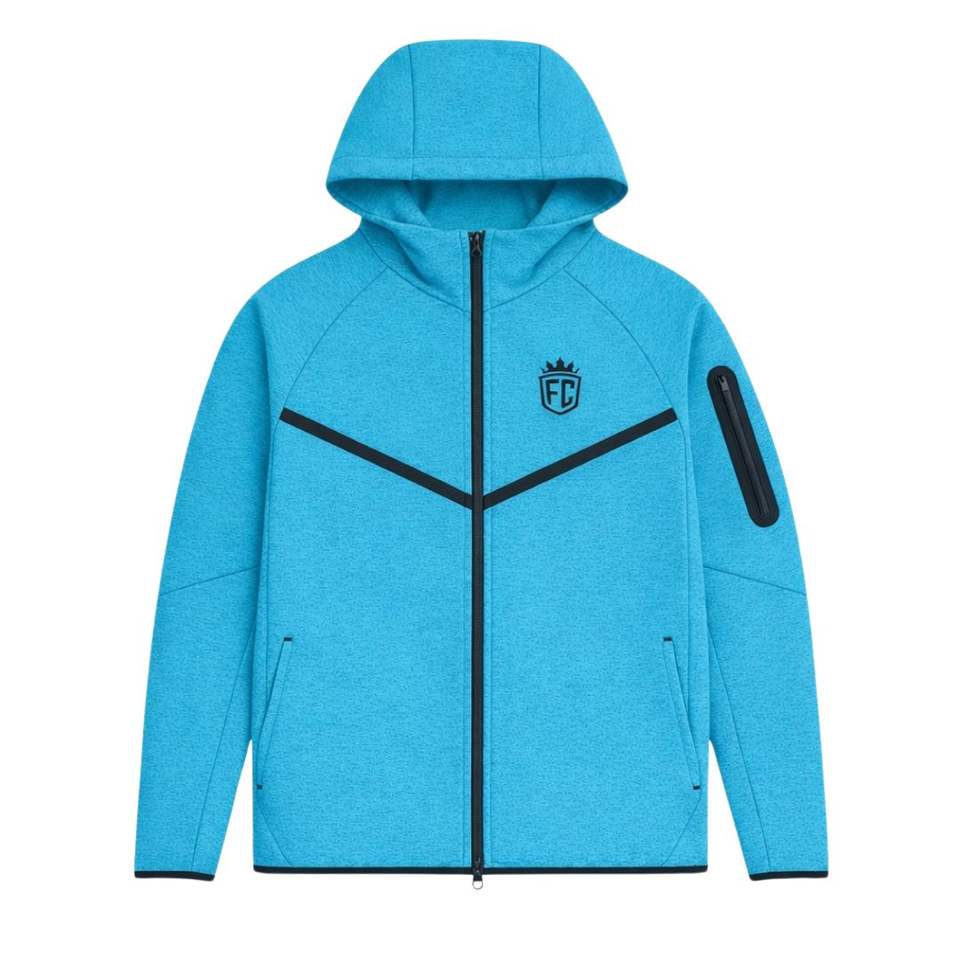 Tuta Sportiva da Uomo in Pile Tecnico con Giacca con Zip e Cappuccio e Pantaloni Jogger Blu Pietra per Allenamento Atletico