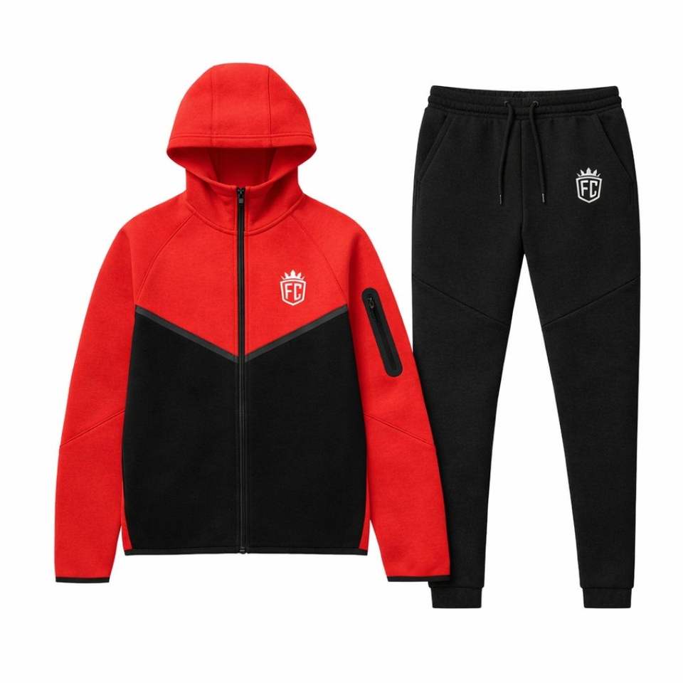 Tuta Sportiva da Uomo in Tessuto Tecnico con Giacca con Zip e Cappuccio e Pantaloni da Jogging, Set Rosso per Allenamento Atletico