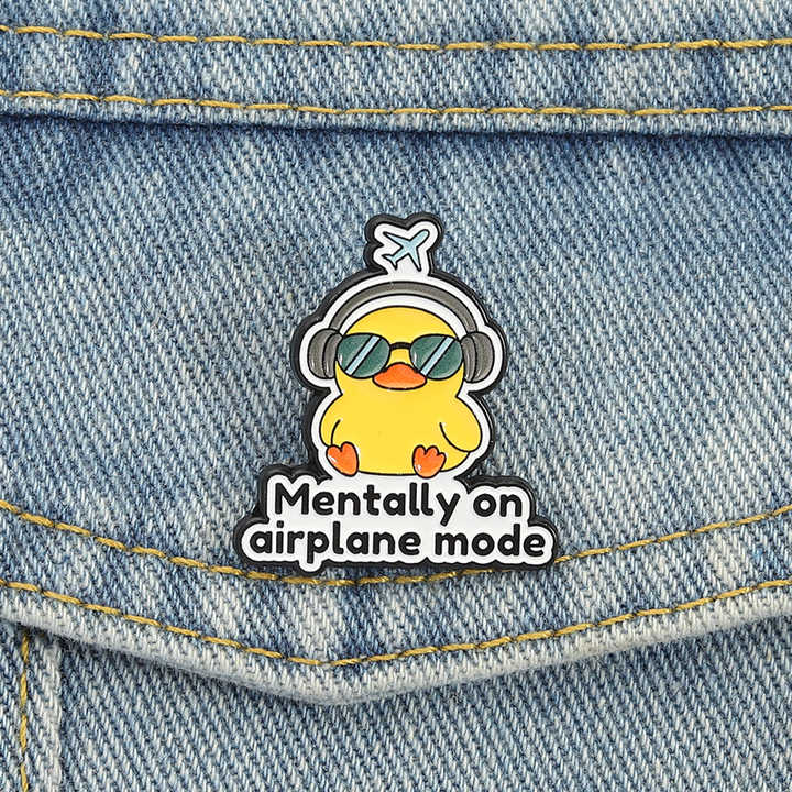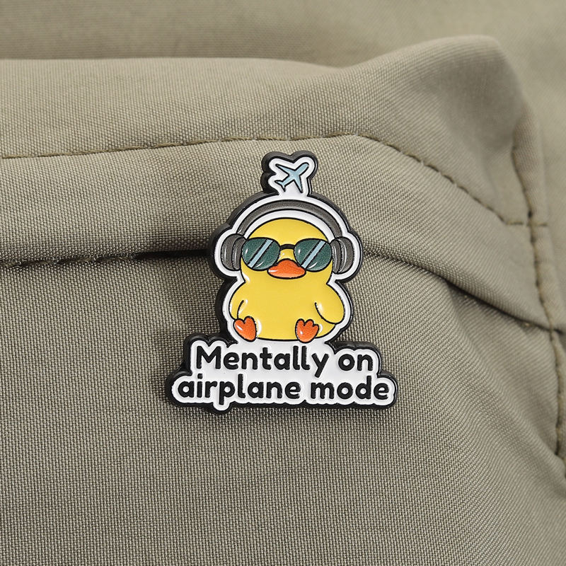 Mentally on Airplane Mode Duck Enamel Pins Cute Duck Self Care Brooch Backpack Lapel Badge Jewelry Gift Wholesale