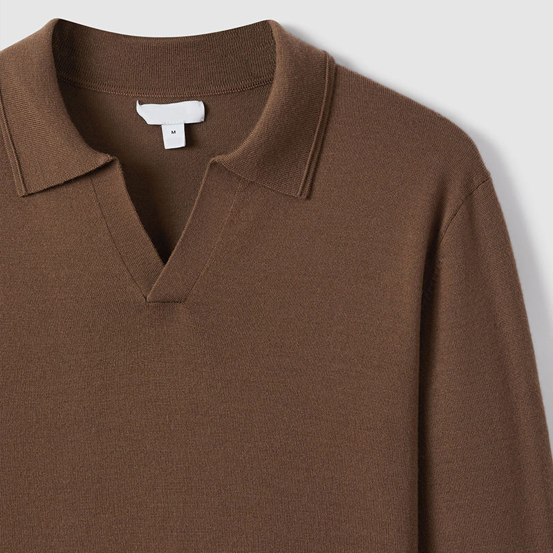 Pullover in lana merino collo polo aperto tinta unita da uomo manica lunga taglie XS–3XL min. ordine 100 pz personalizzabile
