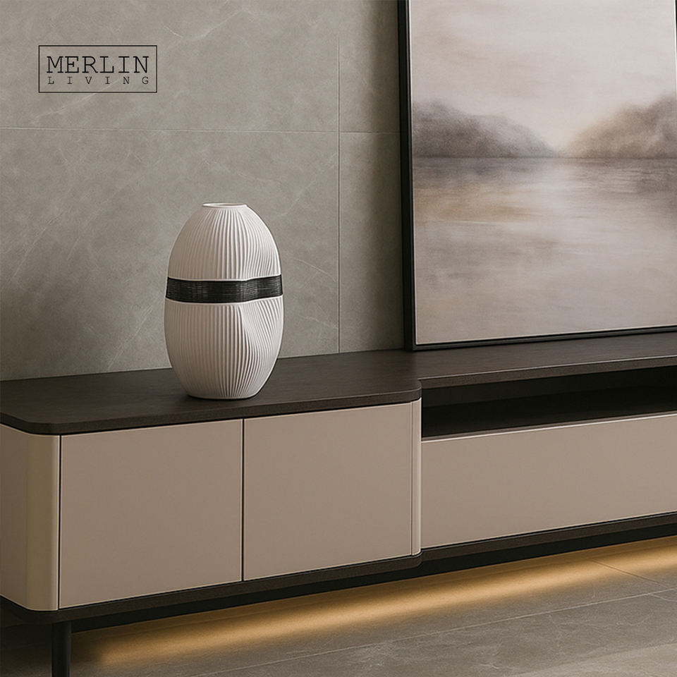 Vaso Nordico Merlin Living, Vaso in Ceramica da Scrivania, Design Ovale con Incavo, Vaso Bianco per Arredamento Casa, Fabbrica di Ceramiche di Chaozhou, Vendita all'Ingrosso
